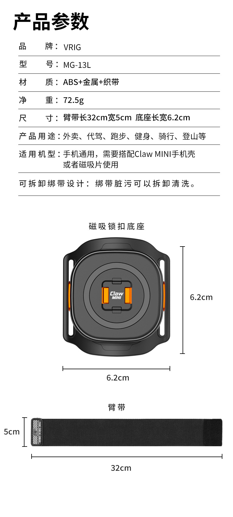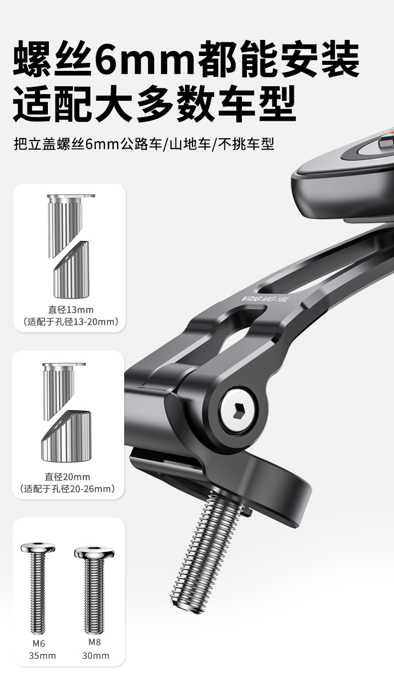 Hongtu VRIG MG-13L/16L/17OL/18L Claw mini マグネット式クイックリリース自転車用スマホホルダー