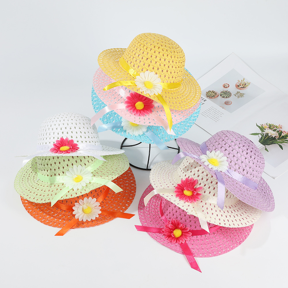 夏のひまわり柄子供用帽子とハンドバッグセット、麦わら屋外日よけ帽子、おしゃれで通気性のあるビーチハット