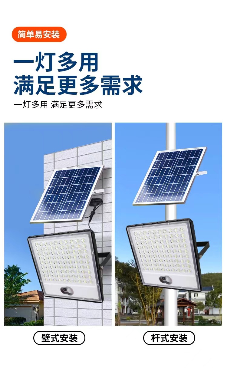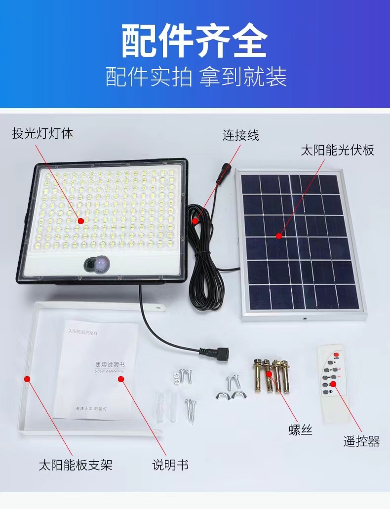 新款智能光控LED太阳能投光灯新农村照明灯户外防水高亮投射灯
