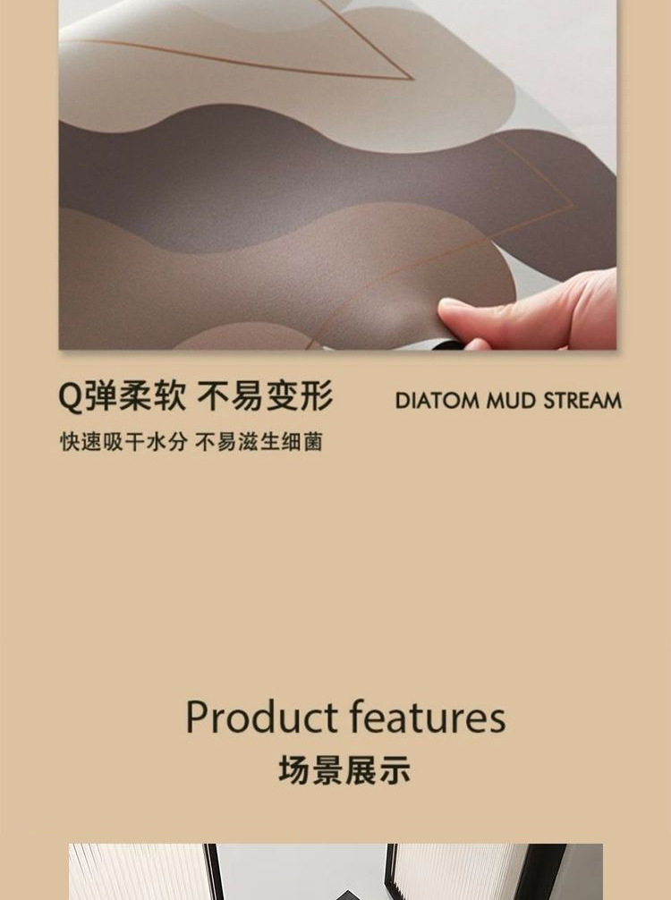 現代のシンプルなキッチンマット家庭用吸水速乾珪藻泥マット