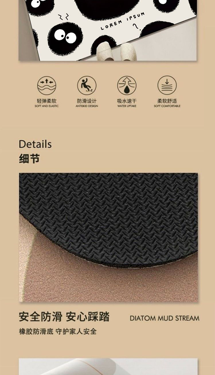 珪藻泥マット漫画萌え趣味パンダ浴室滑り止めマットトイレ吸水マット家庭用耐磨耗マット