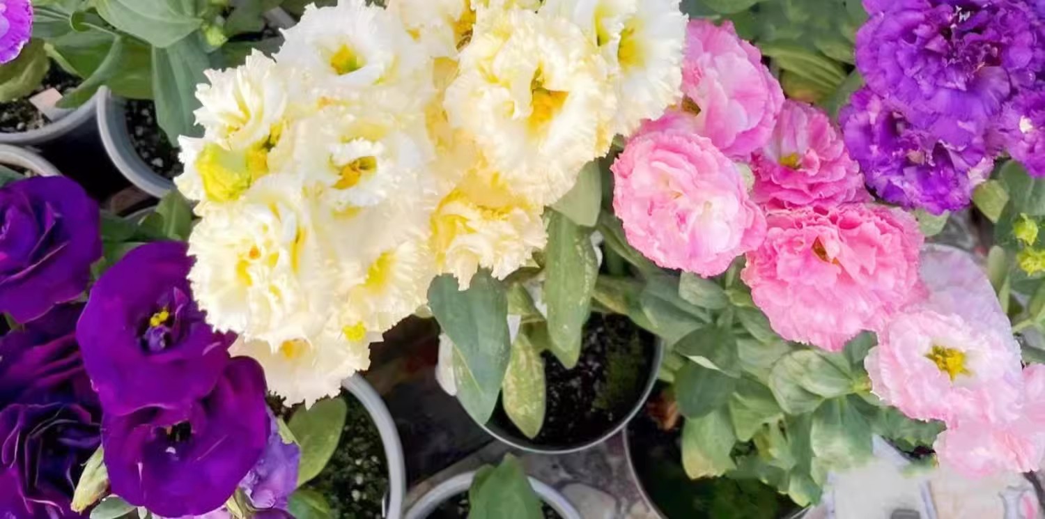 満腹感 トルコギキョウ,トルコギキョウ,赤いトルコギキョウ,ピンクのトルコギキョウ,緑のトルコギキョウ,ミックスカラーリシアンサス,クラッシュアイスブルー,大きな青い縁取り,アイスクリーム,スモークグレーパープル,深い紫