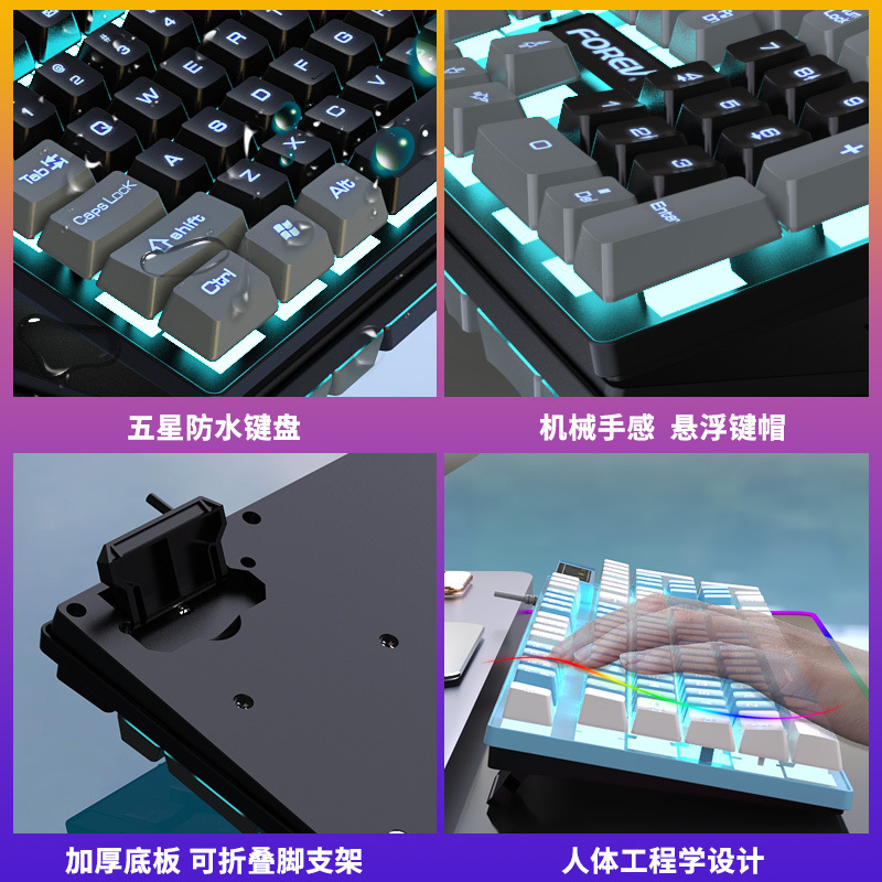 国境を越えた有線ゲーム静音キーボードマウス機械手触り競争RGB高颜値オフィスキーセット