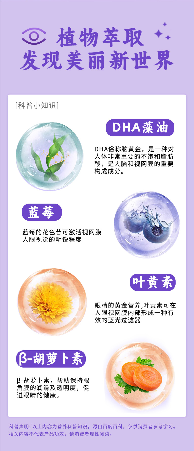 メーカー卸売りブルーベリー葉黄素ソフトキャンディ胡羅素ブルーベリー抽出葉黄素エステル濃縮60gスポット