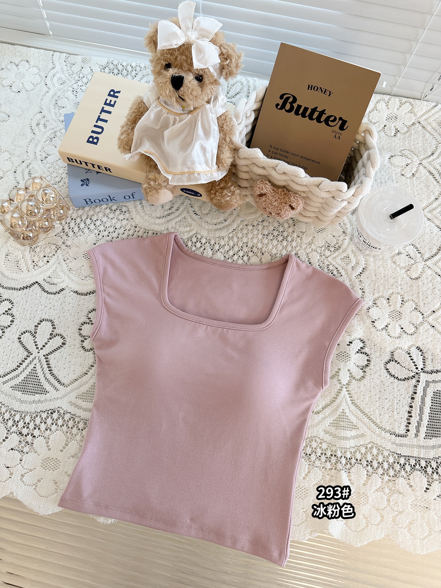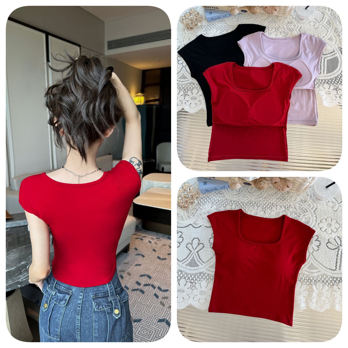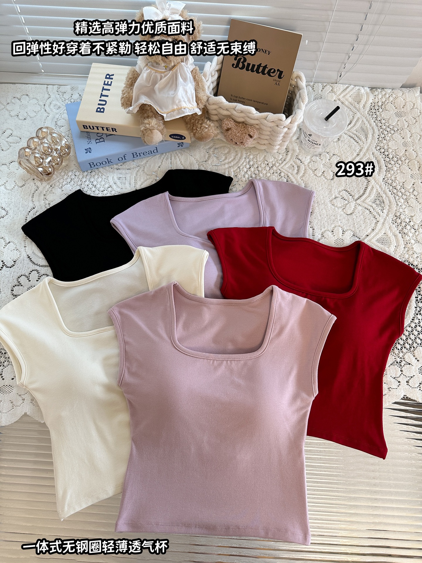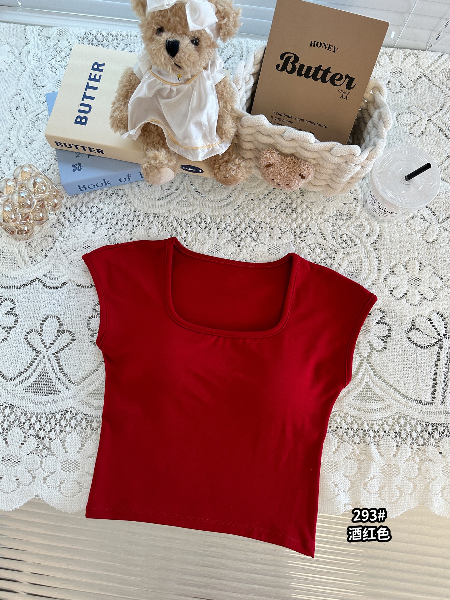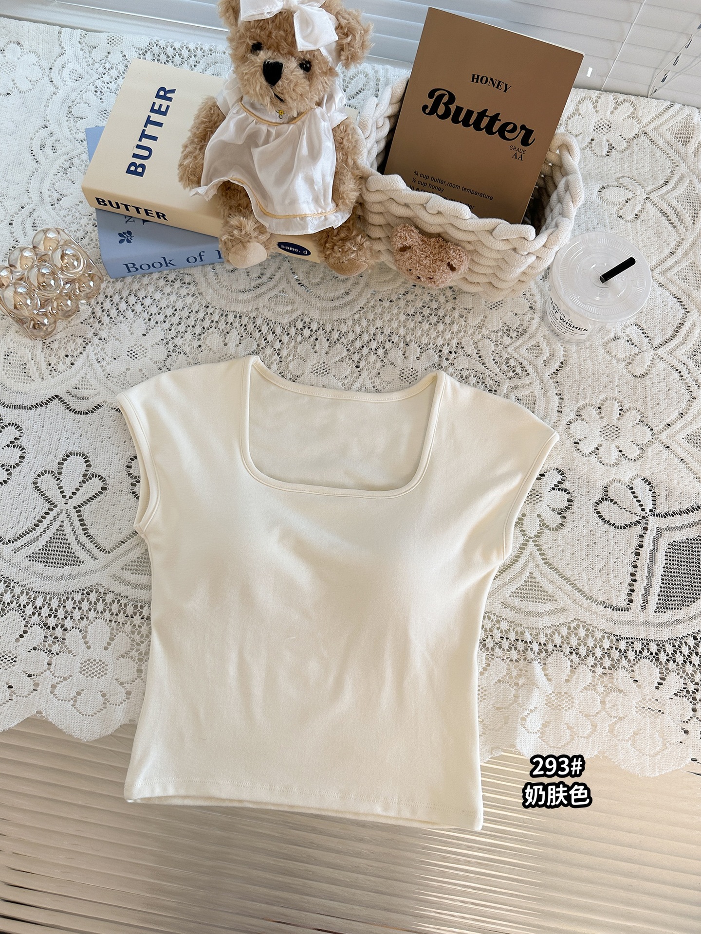 300 # 早秋新作正肩毛丸襟一体カップ小飛袖ショートベストtシャツ