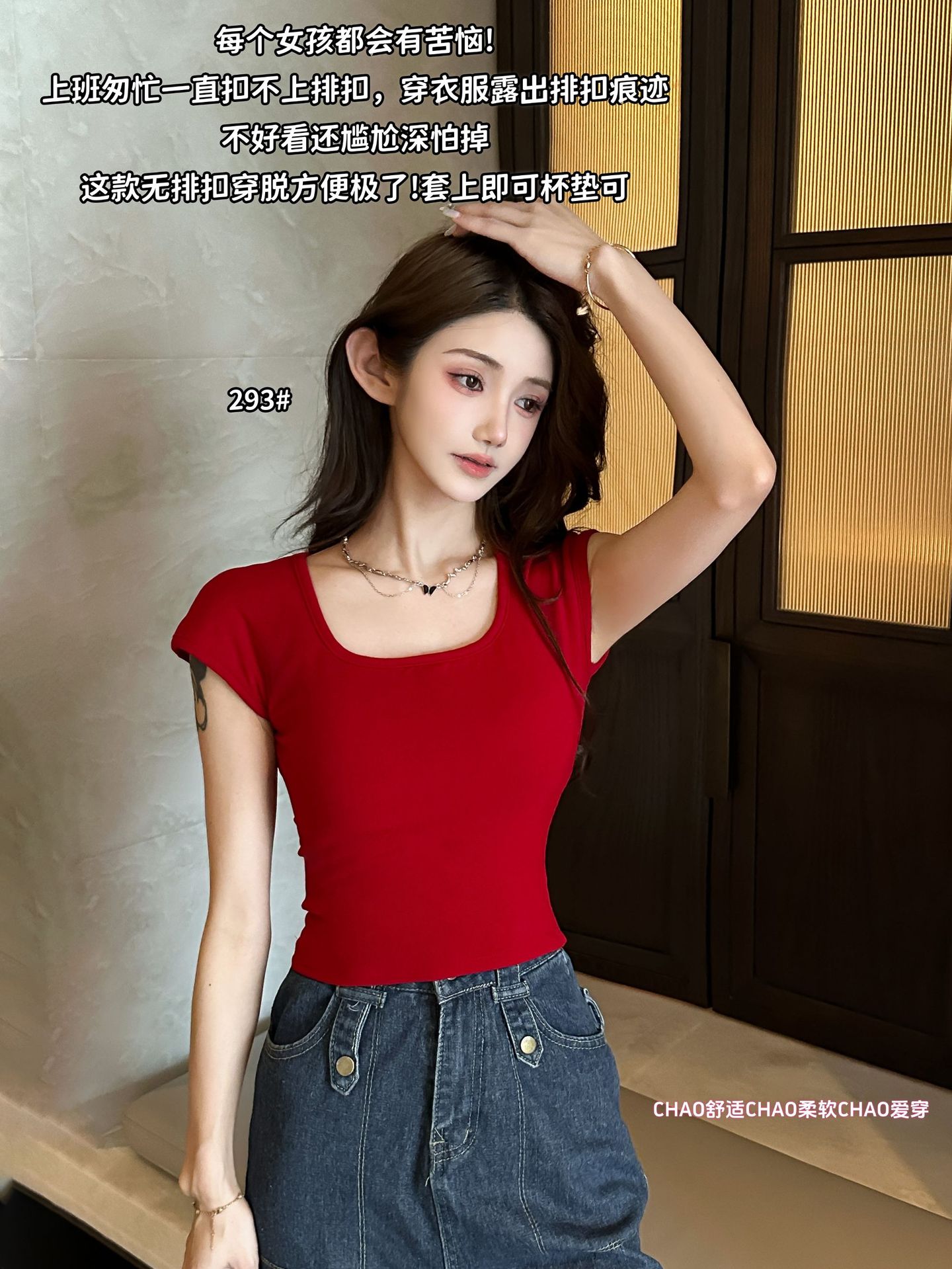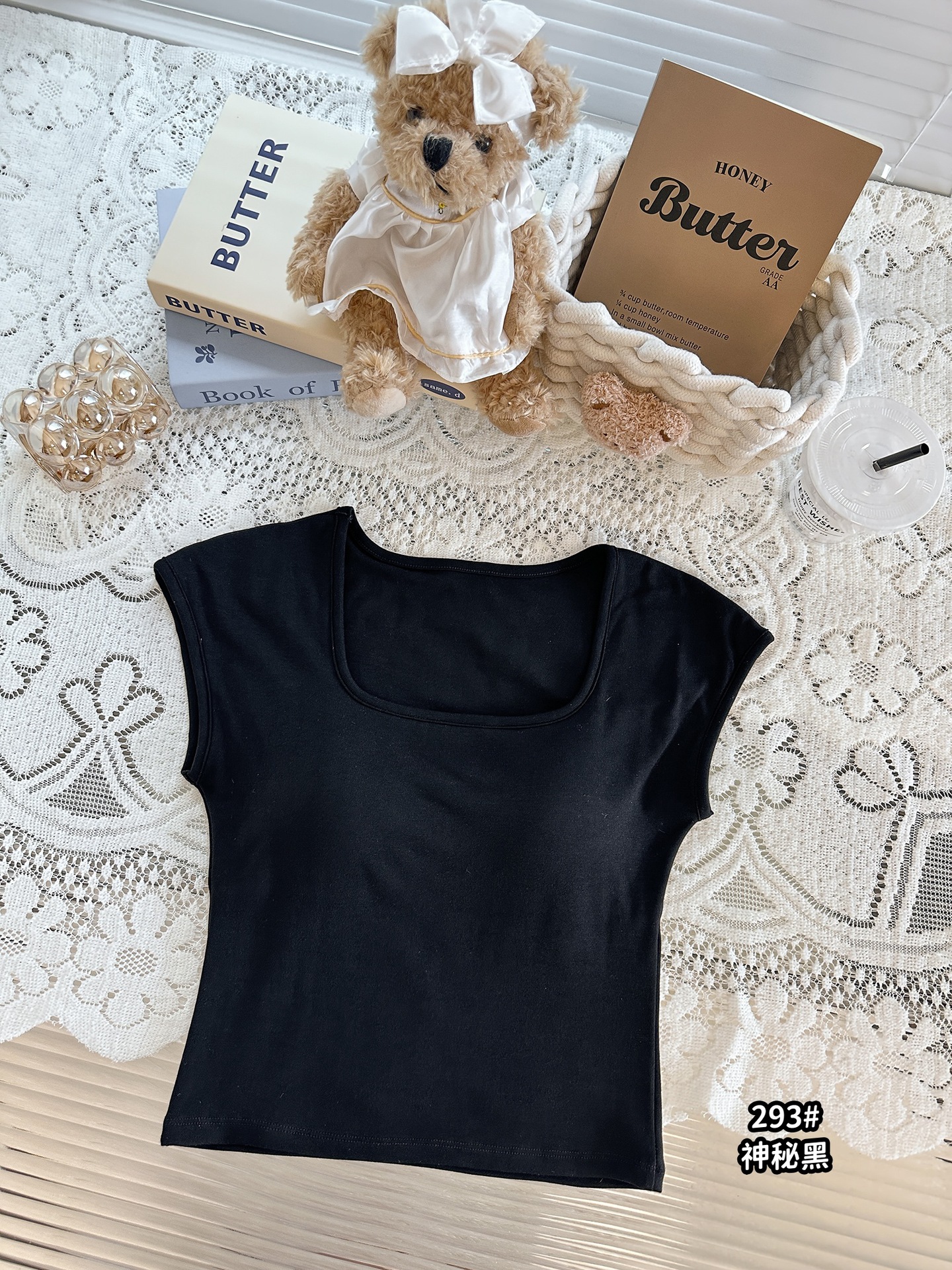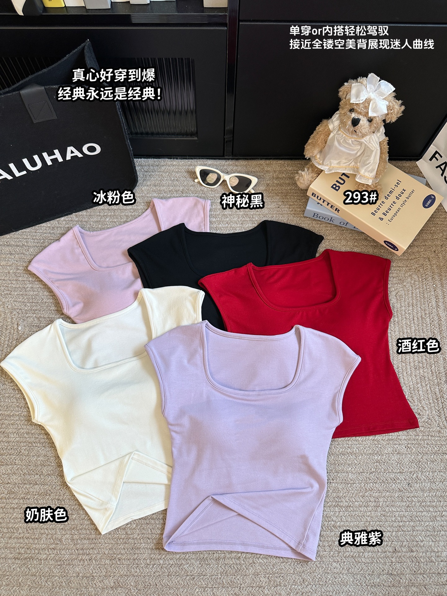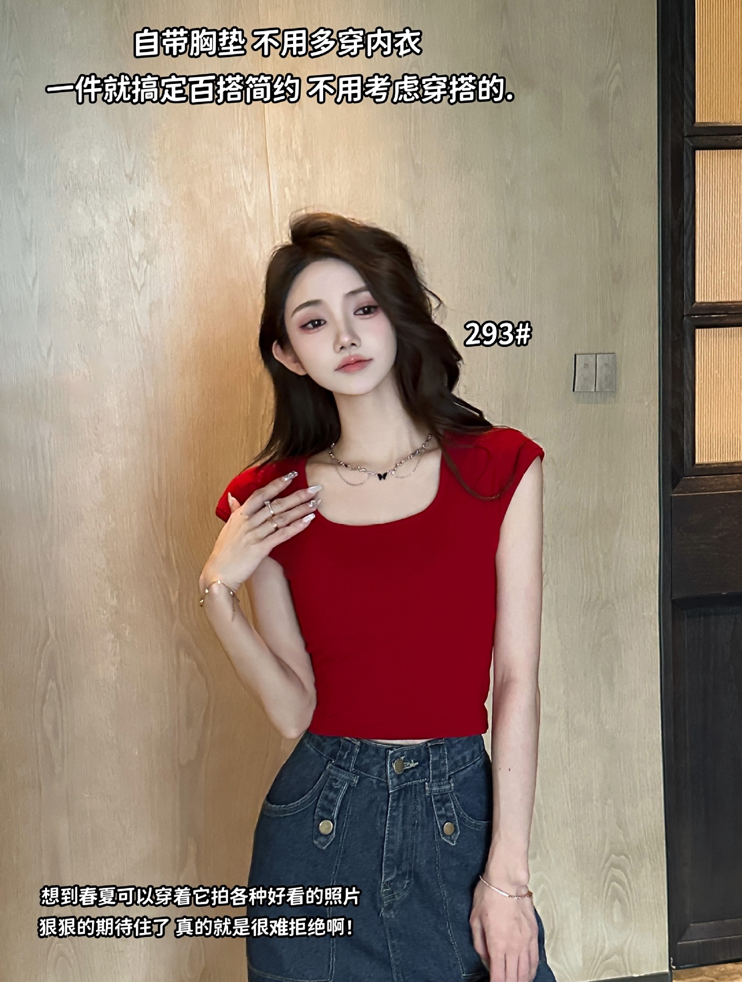 300 # 早秋新作正肩毛丸襟一体カップ小飛袖ショートベストtシャツ