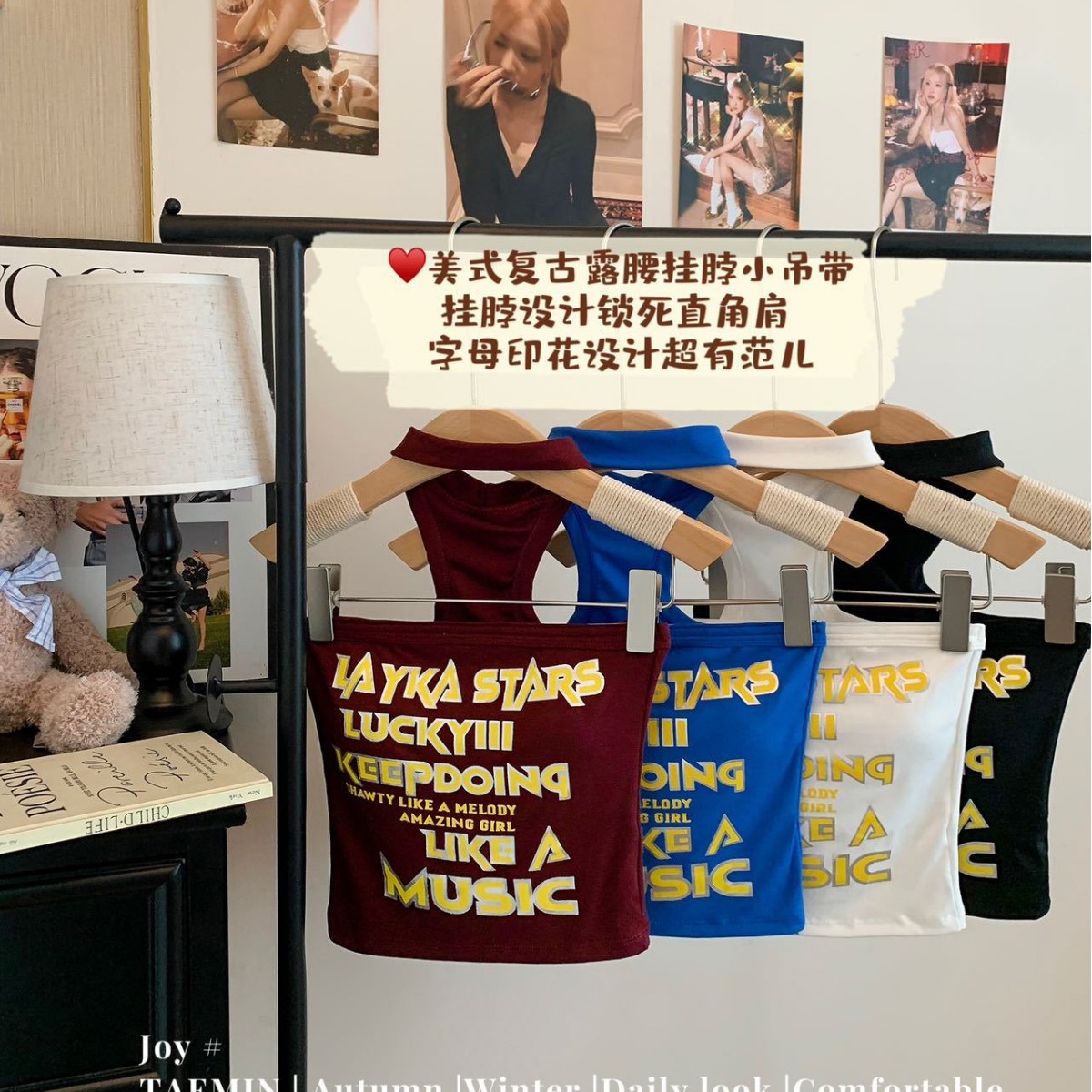 1932 # アメリカンレトロレタープリントホットガールスモールサスペンダーレディース新作インナーとアウターウェアスリムショートトップ