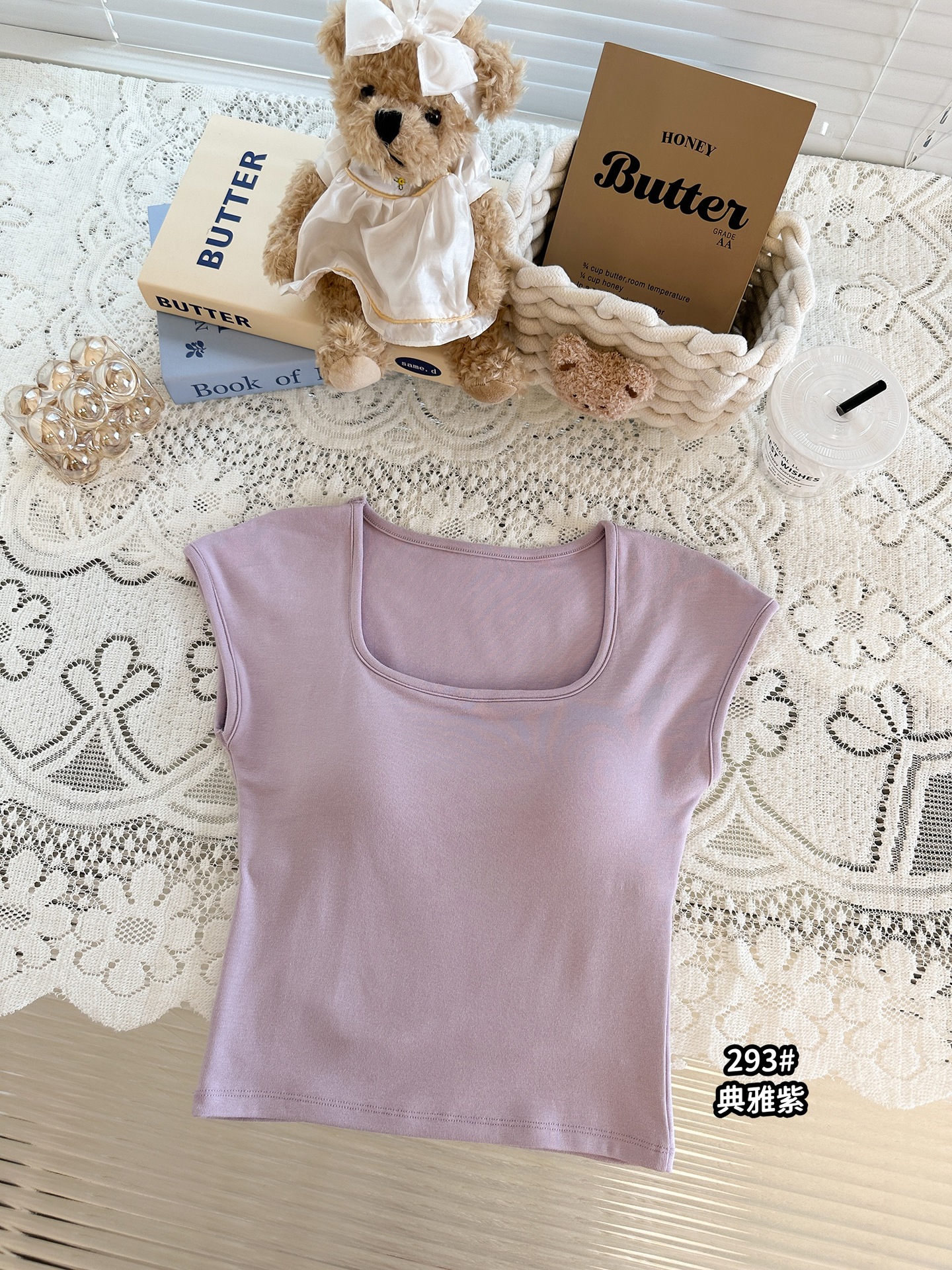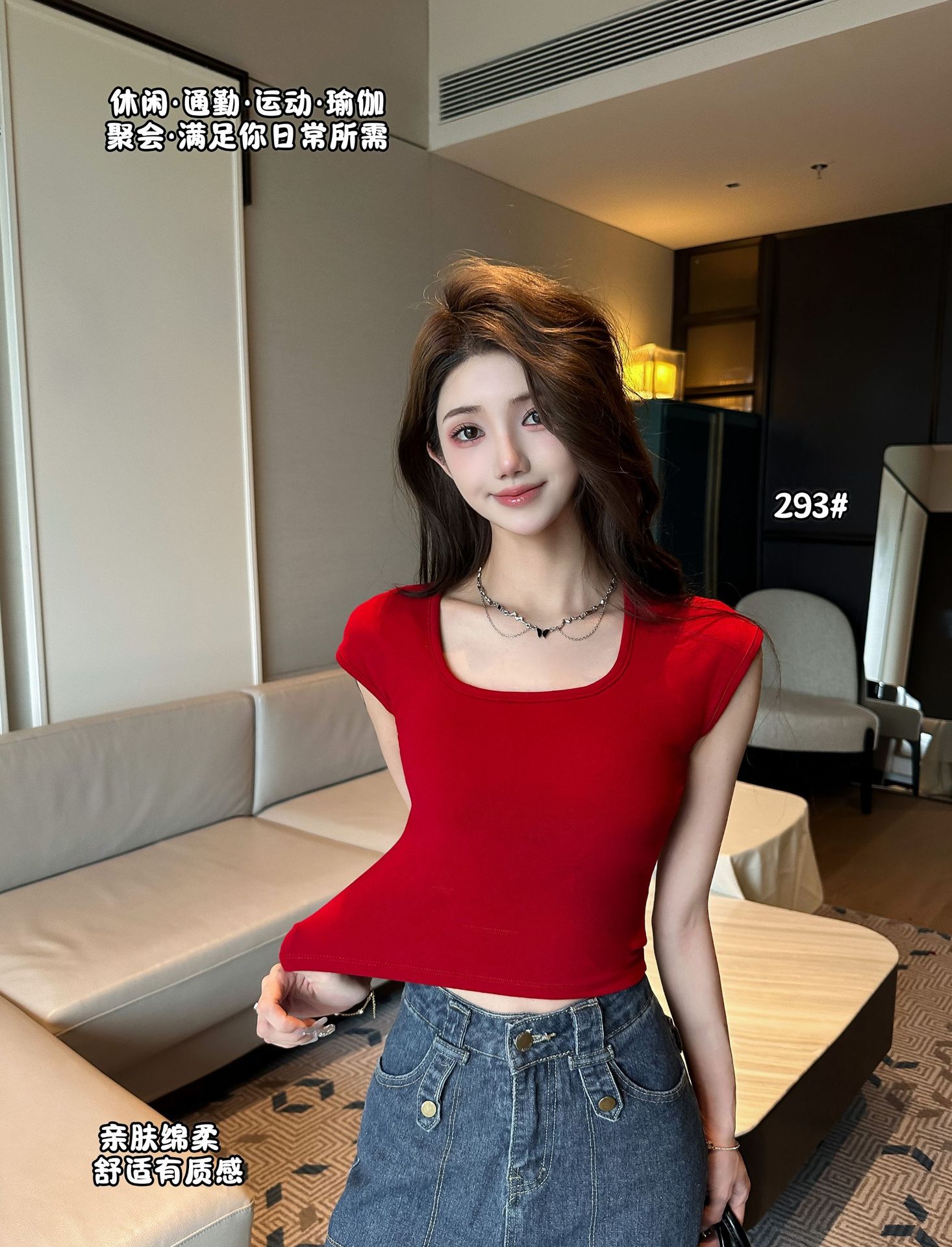 293 # 新商品の方襟の小さい飛袖のギャルは身を修めて底の柔らかい肌の半袖のtシャツの女性の百合の洋風の金を打ちます