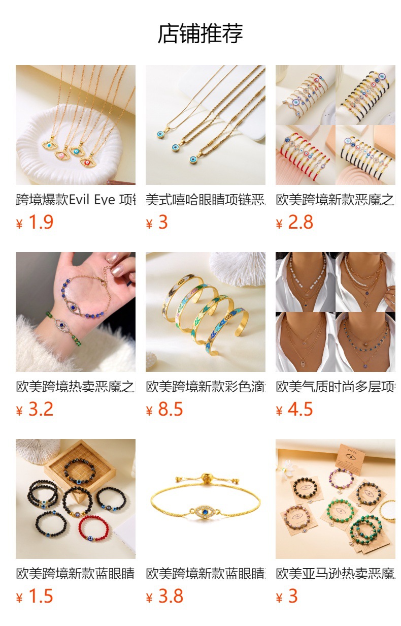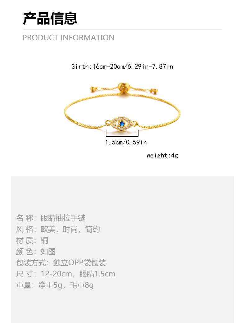 跨境恶魔之眼手链爆款合集不规则可调节编织手链时尚镶钻抽拉手链