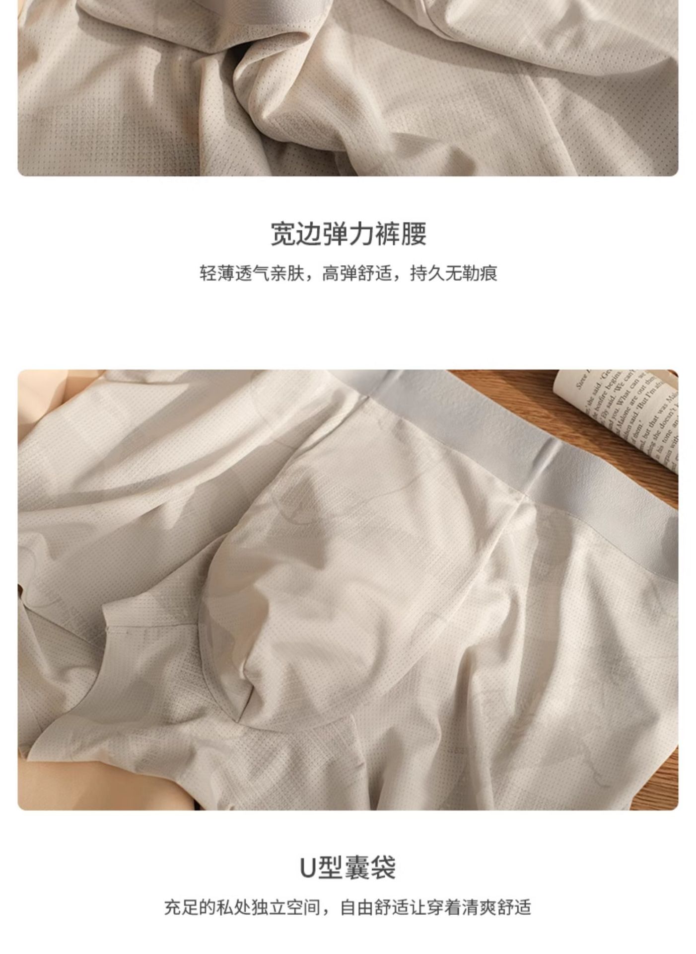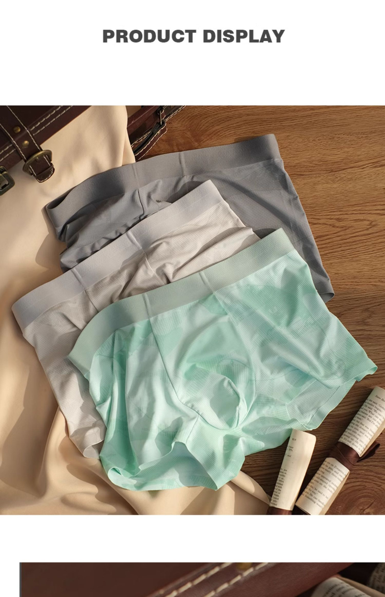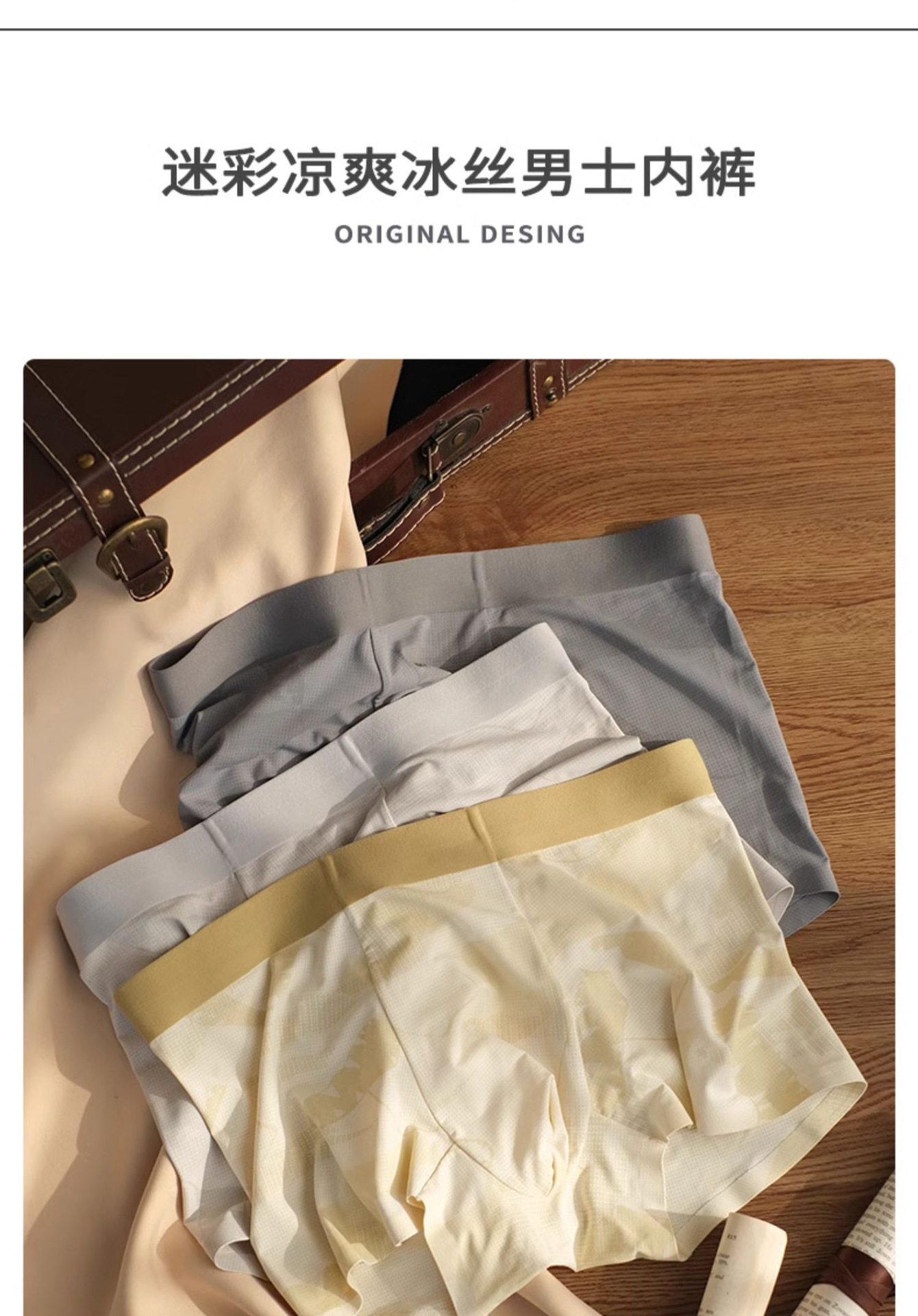 3本入り氷感無痕男性アイスパンツ迷彩プリント平角ズボン男性薄手通気下着高品