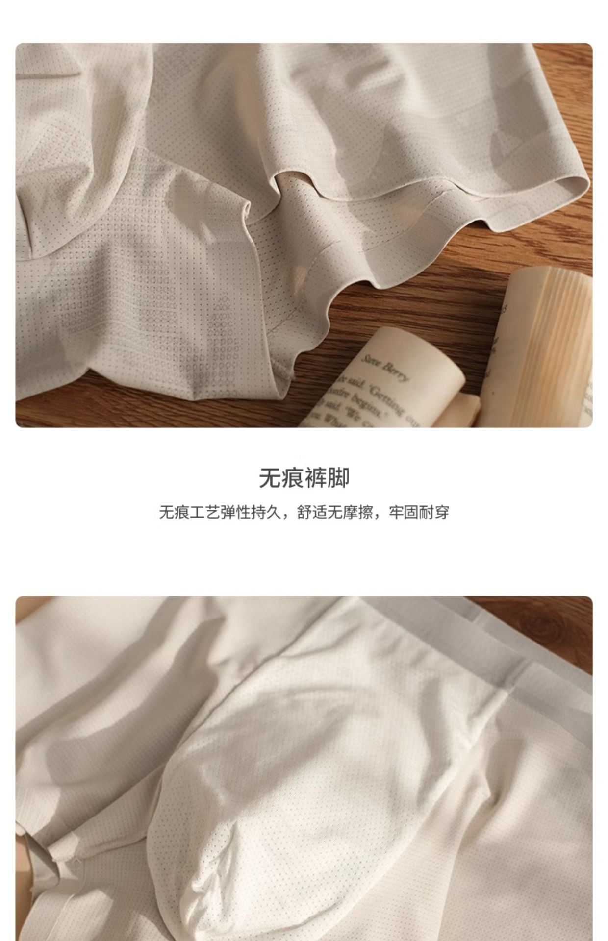 2025男内裤夏季冰丝网孔小熊印花无痕男生平角猛男粉内裤底裤裤衩