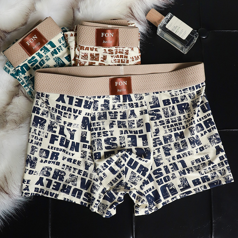 複数の服の新型アメリカのレトロな男性の下着の個性のアルファベットのプリントの中で腰の平角のズボンの半ズボンのネットの穴は簡単です。