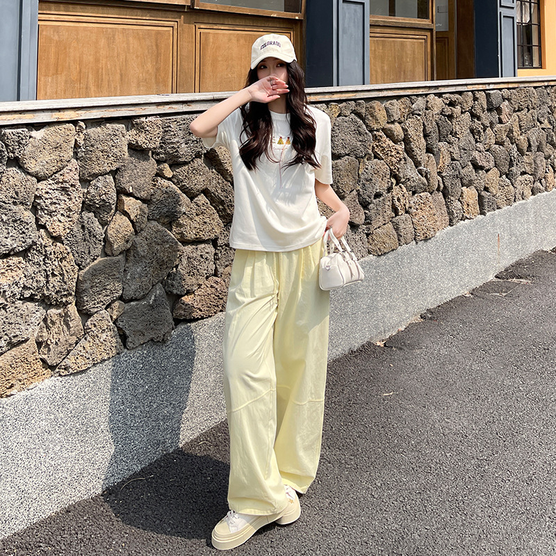 大根のおじさんのアメリカ式の工装のズボンの女性の高級感のズボンの春夏のハイウエストの広い足のズボンのまっすぐな筒のカジュアルなスポーツのズボン