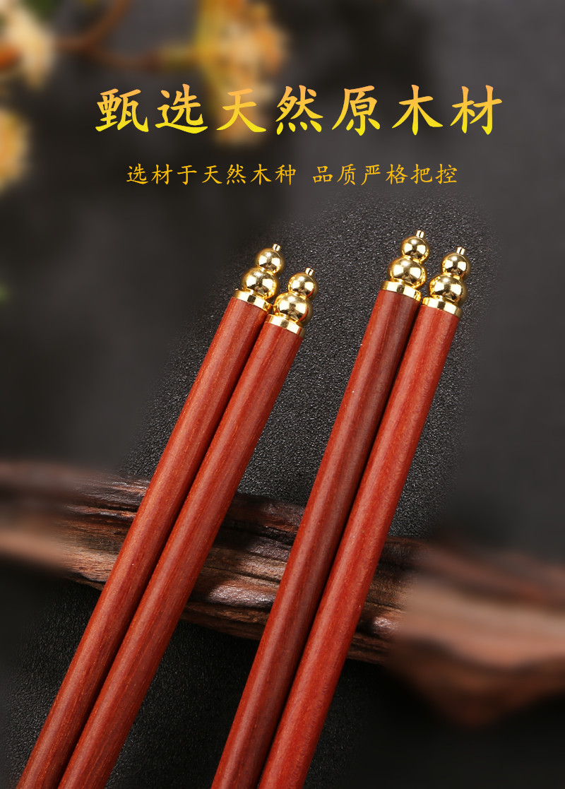 ひょうたん紅檀木箸国朝風家庭プレゼント実木無漆紫光檀木箸ビジネスギフト箸卸売り