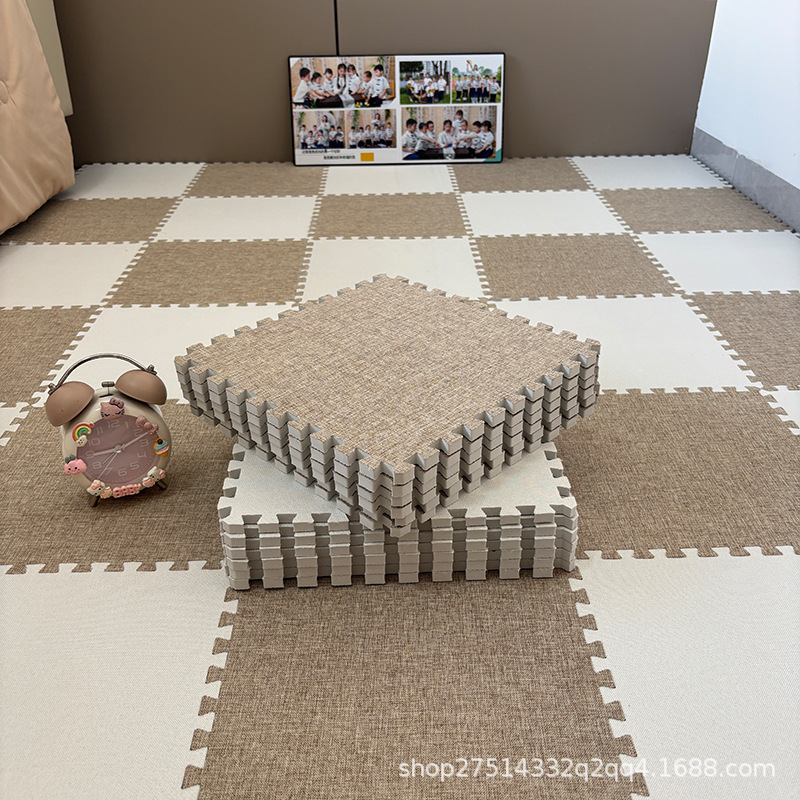 厂家代发四季亚麻棉地毯卧室拼接泡沫地垫房间客厅全铺可裁剪垫子