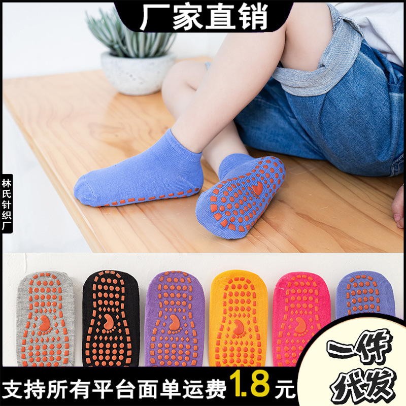 メーカー卸売りの赤ちゃんの床の靴下の室内のトランポリンの子供の滑り止めのシリコンの靴下のカバーの早教の子供の床の靴下