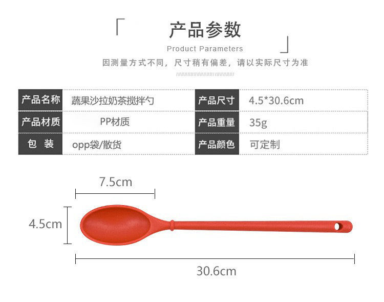 プラスチックの長い柄のサラダのスプーンのミルクティーのコーヒーはスプーンのサラダをかき混ぜます。
