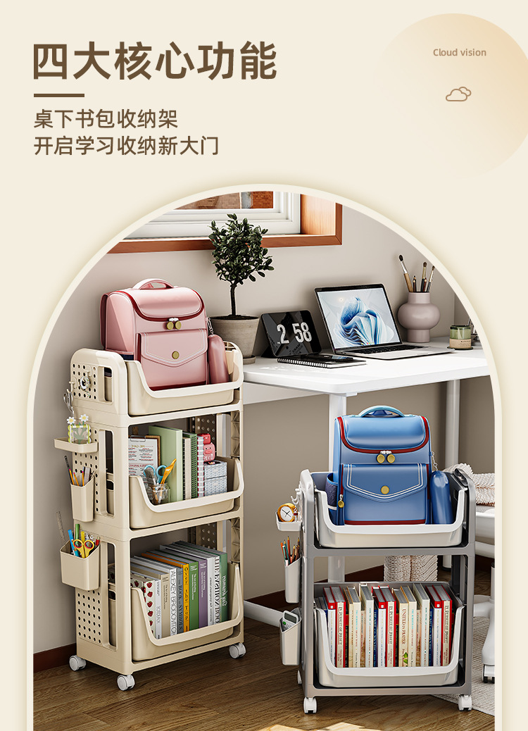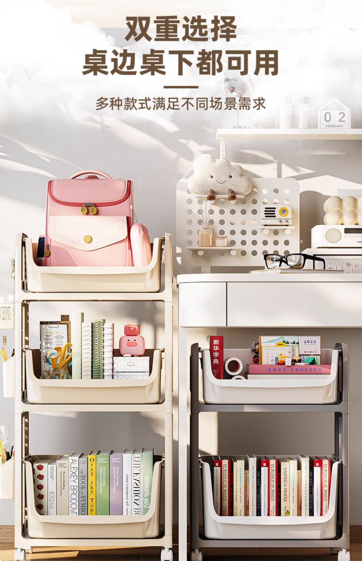 书包置物架家用多层桌下滑轮柜放书本零食收纳架可移动厨房小推车