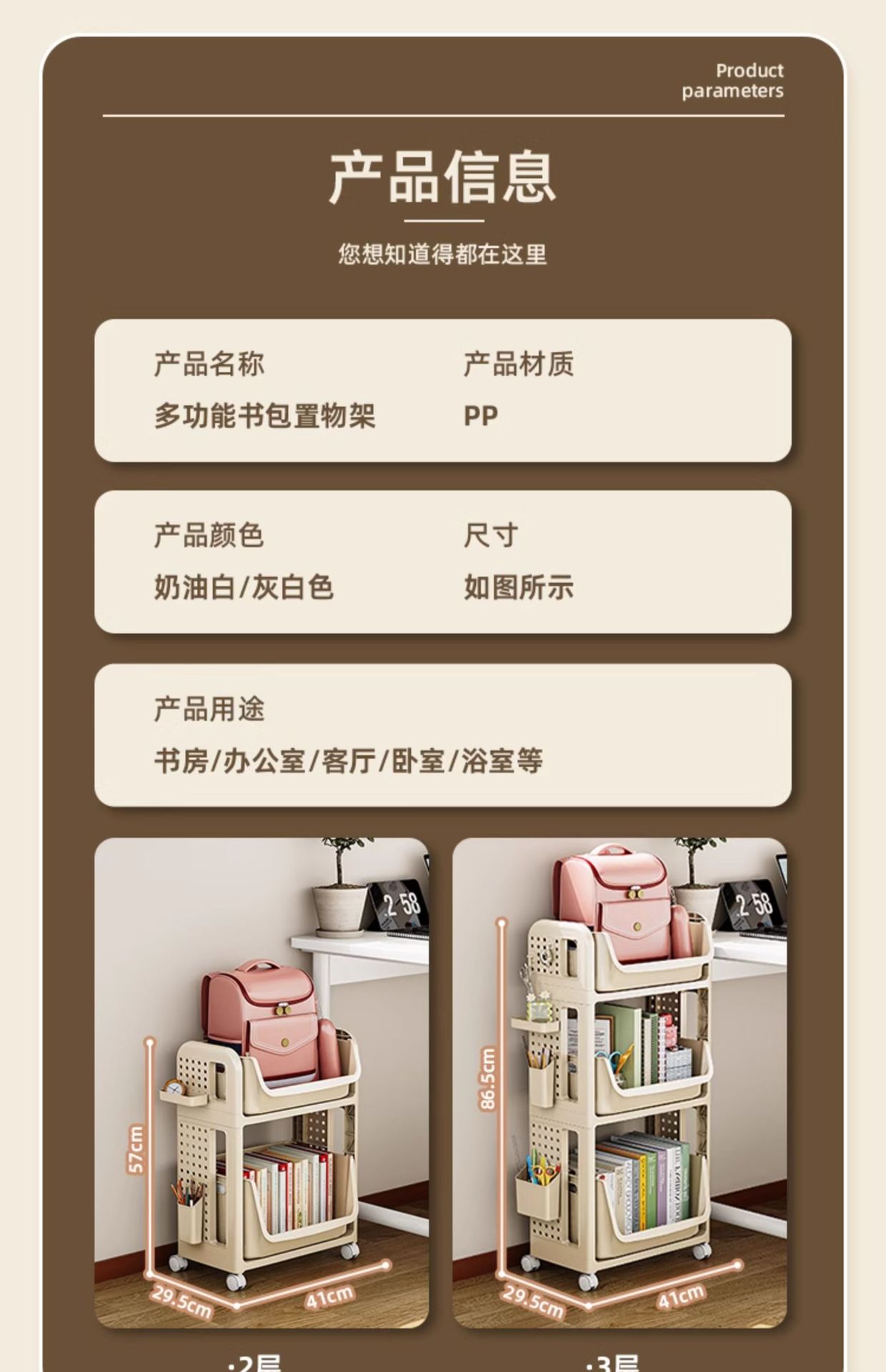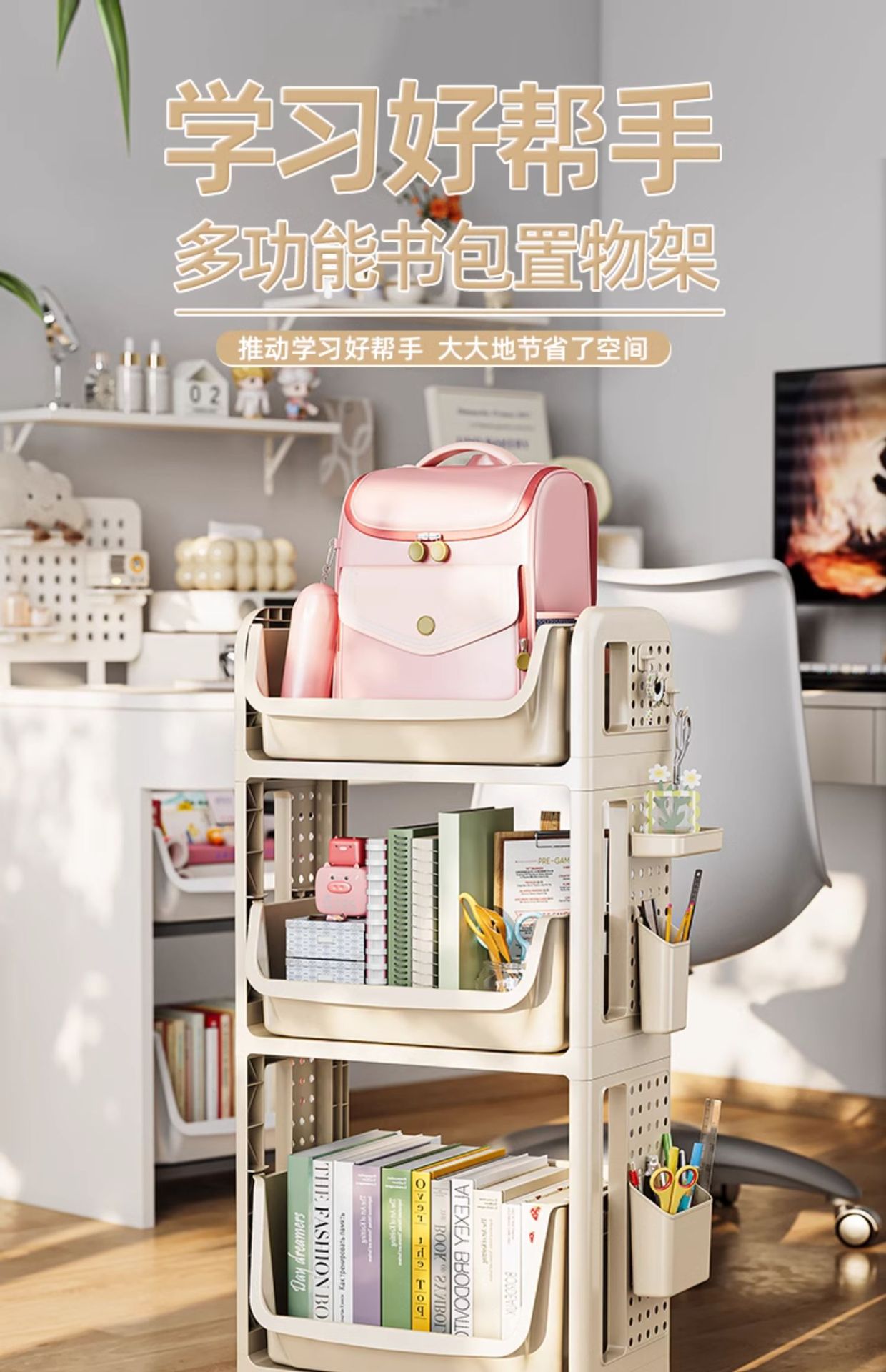 躬亲书包置物架可移动落地小推车多层大容量书本整理实用收纳神器