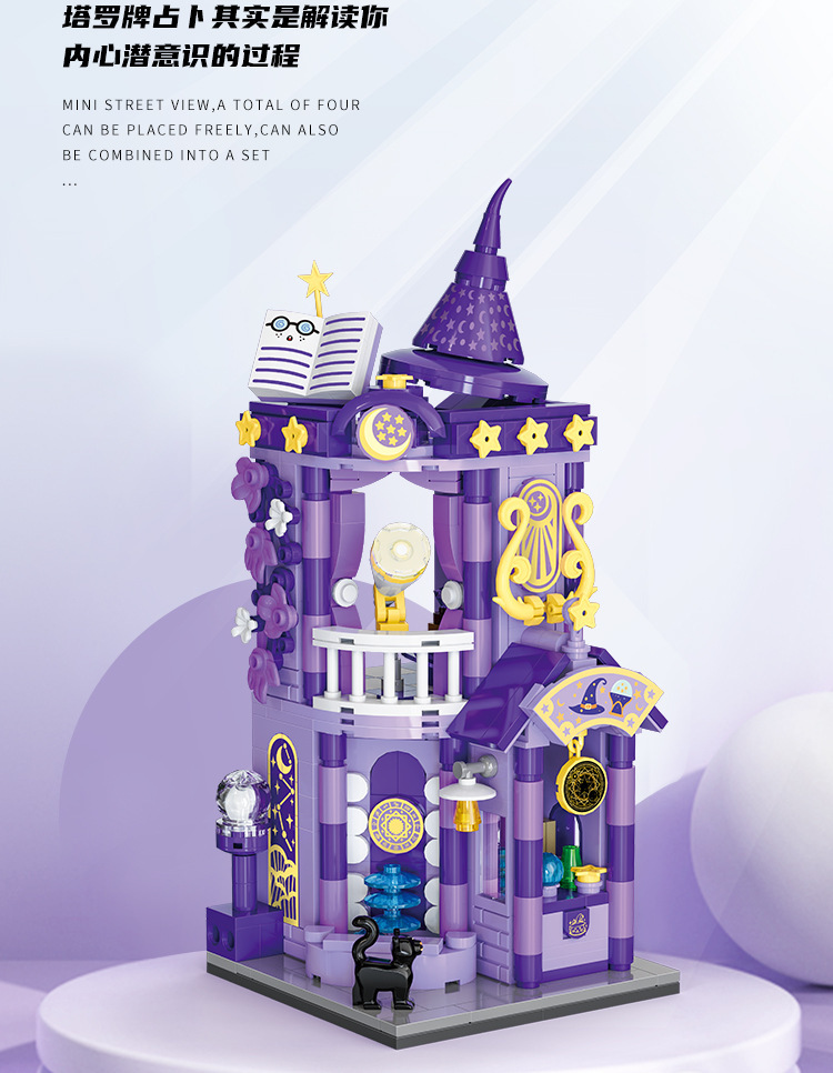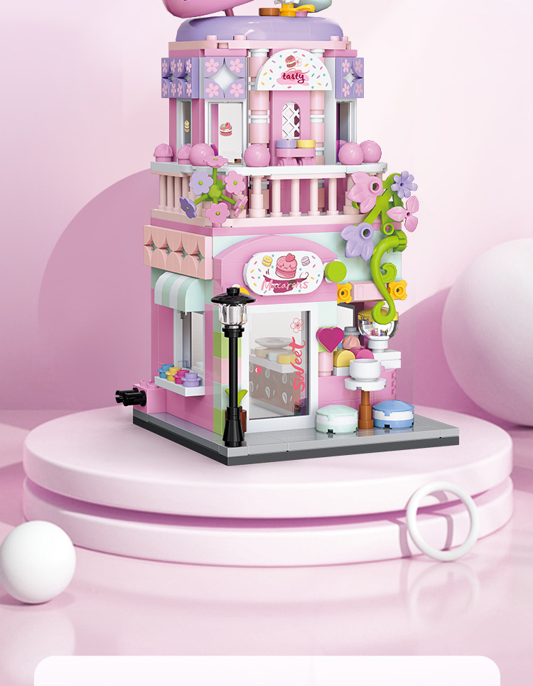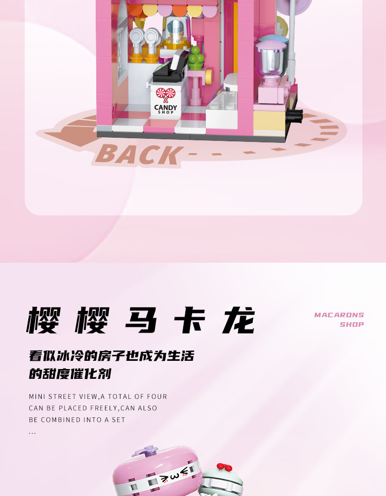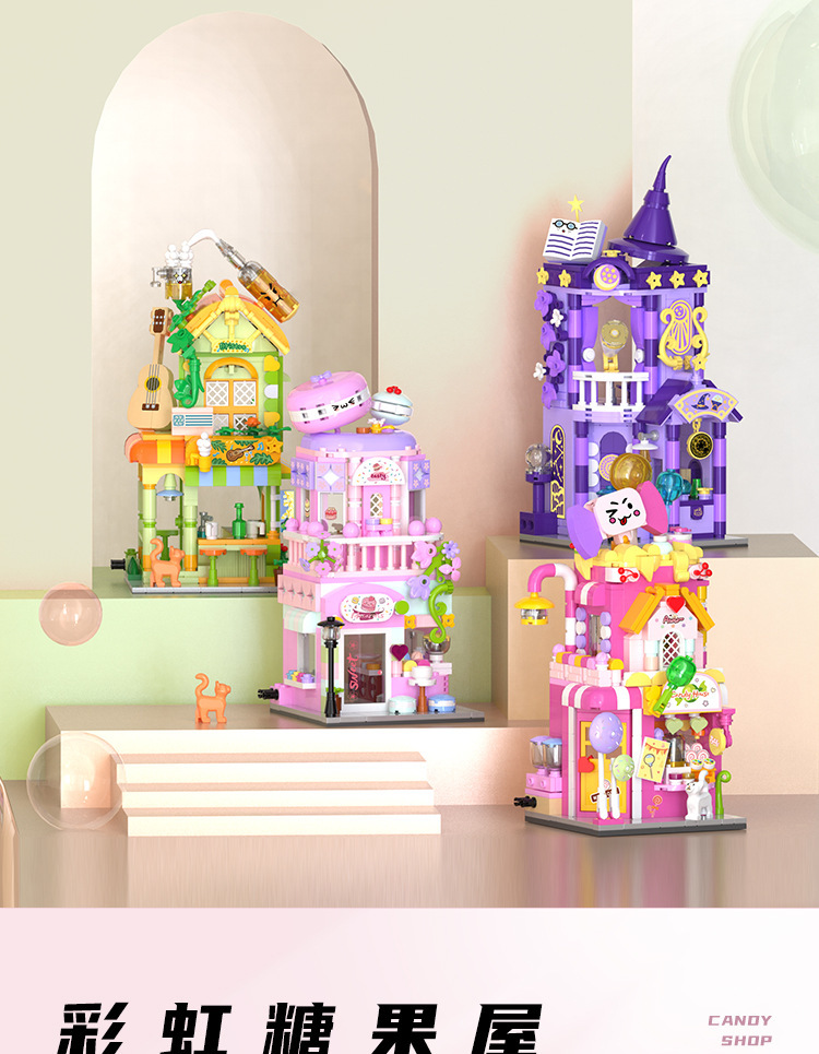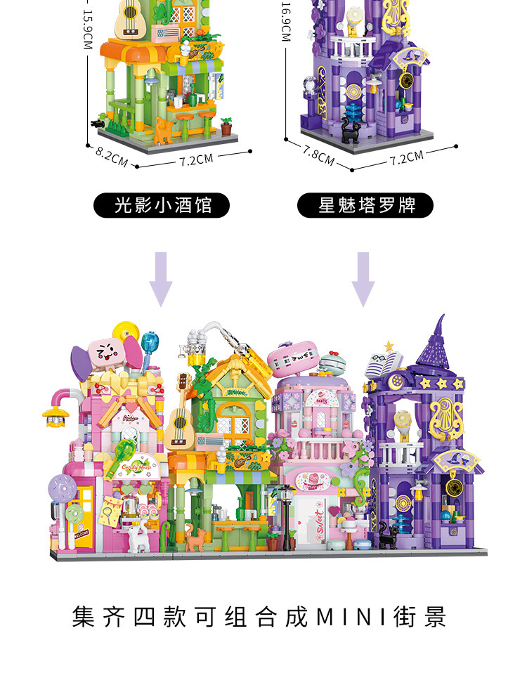カラー 21200-レインボーキャンディーハウス【498PCS】,21201-サクラマカロン【475PCS】,21202-光影居酒屋【498PCS】,21203-星魅タロット【472PCS】,4つのキャンディーのストリートビュー