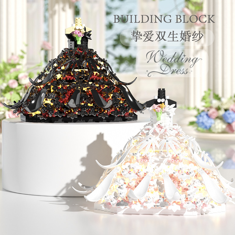 跨境微小颗粒拼装积木白色婚纱黑天鹅拼装玩具七夕情人节礼物批发