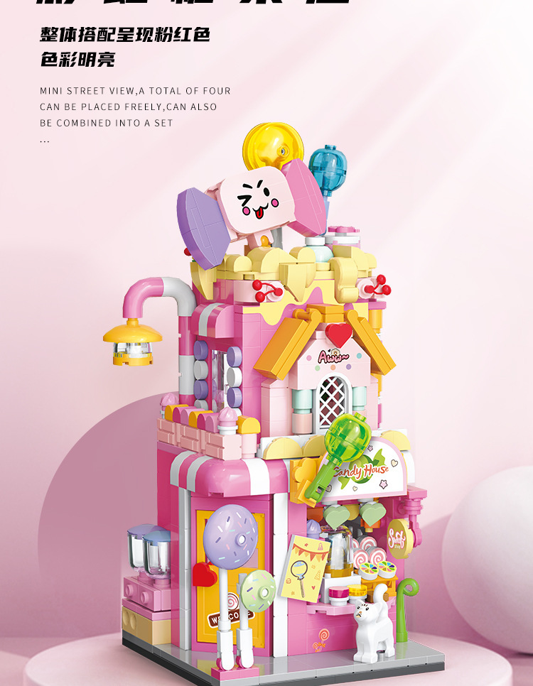 創意的な女の子のキャンディーの街並みの小さい粒子の益智は積み木のおもちゃの建築のデスクトップの置物の模型の卸売りをつづり合わせます。