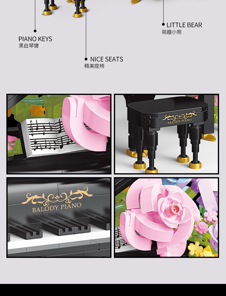 カラー 21228-プリザーブドフラワーピアノ【950個】,21194-プリザーブドフラワーバイオリン【841PCS】,21277-クラインの夜曲【1125PCS】,21278-シェンブルンの暖陽【ウクレレ909PCS】
