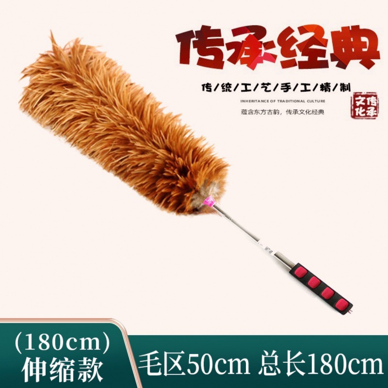 鸡毛掸子真毛鸡毛撢子鸡毛扫除尘伸缩高档把加密可水洗家用车用