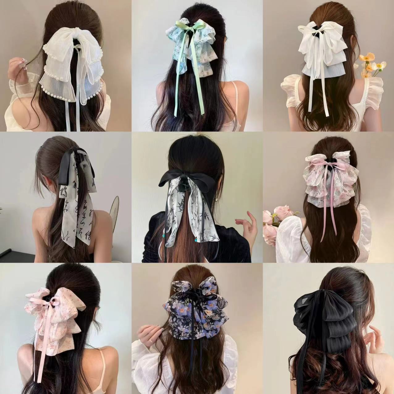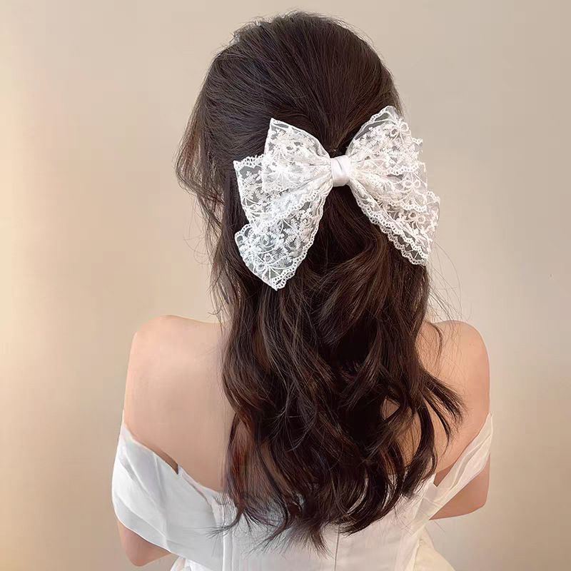 法式蕾丝蝴蝶结发夹批发女士新款飘带扎马尾弹簧夹后脑勺盘发抓夹