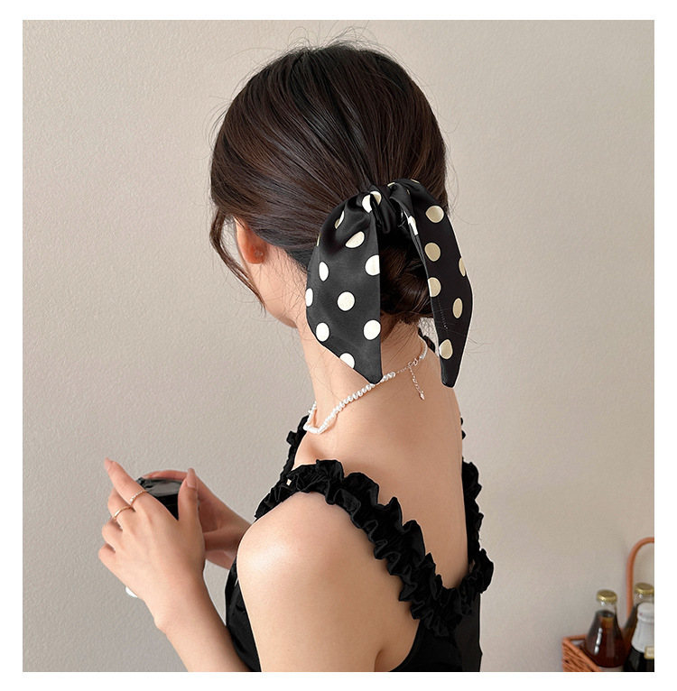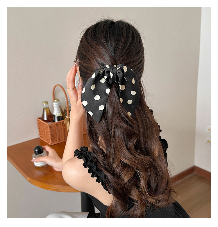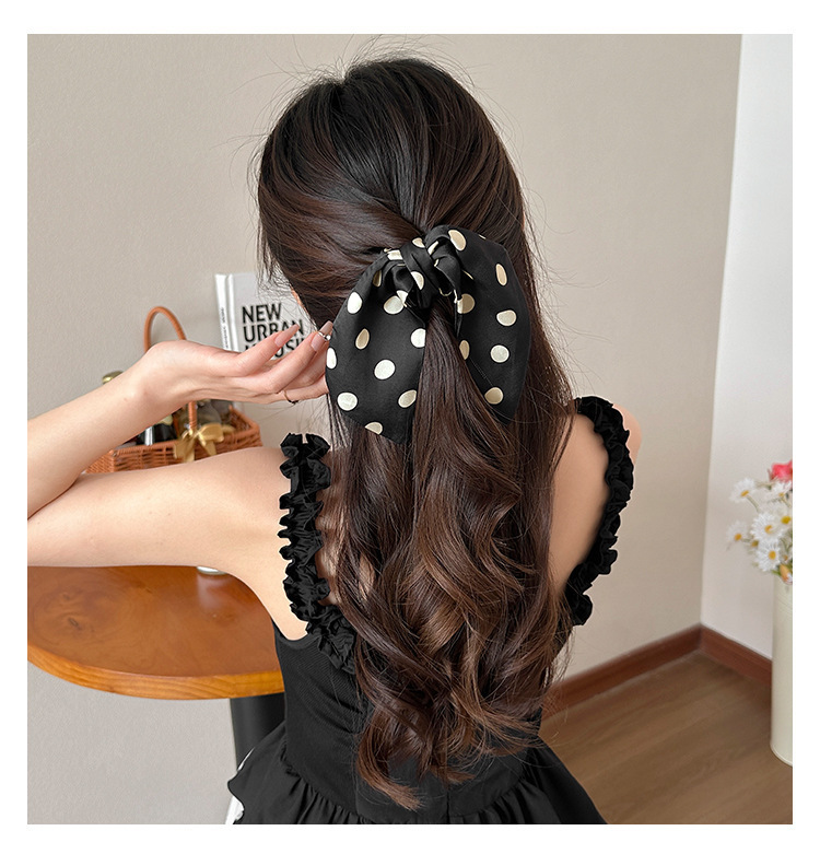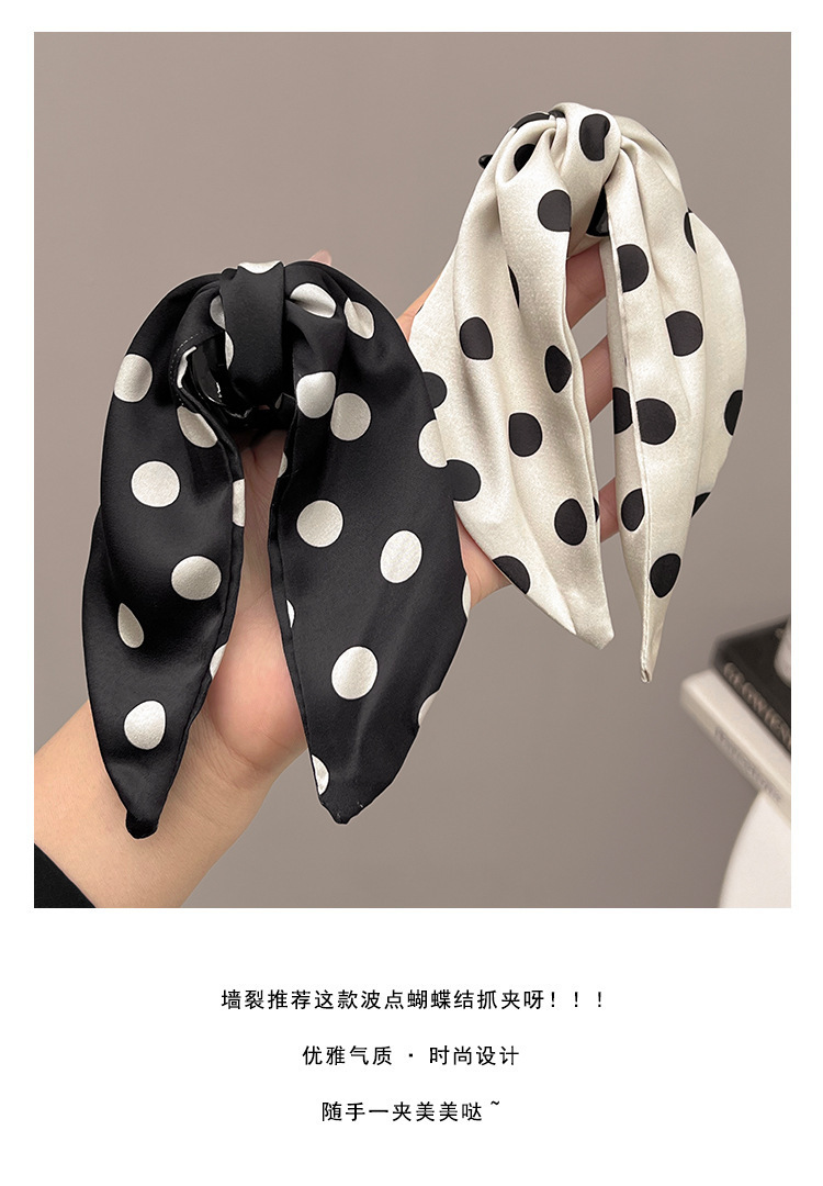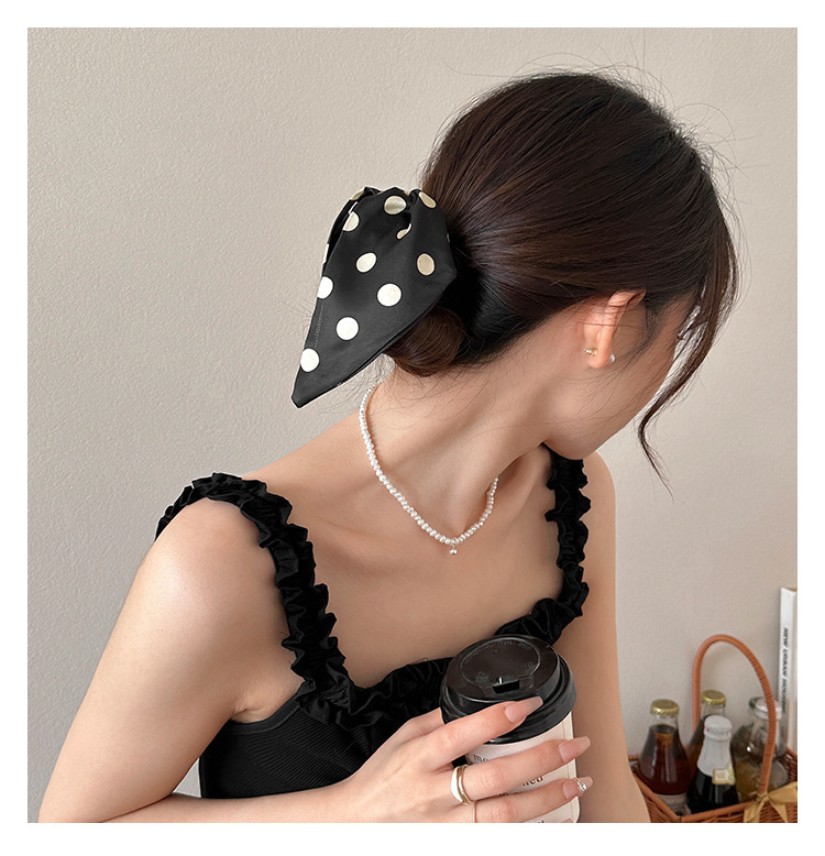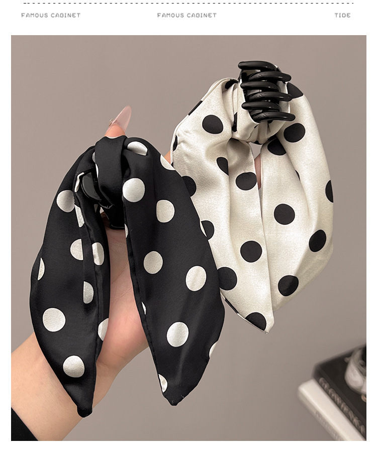 カラー 黒波点-ポニーテールクリップ,米波点-馬尾グリップ,{黒波点米波点} 馬尾クリップ