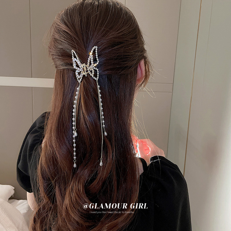 女性用メタルバタフライヘアピン、ハイエンド、気質、ハーフタイヘアタッセルペンダントヘアアクセサリー、2025年新作後頭部グリッパー