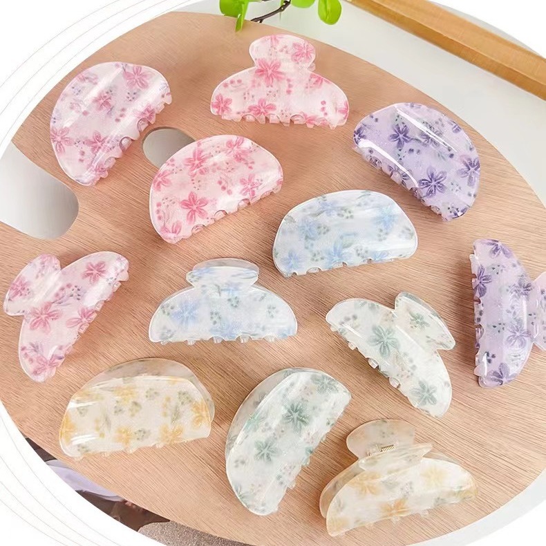 新商品の砕花アクリルクリップの美しい小清新な花の半円の髪のクリップのシンプルなドーパミンの少女サメのクリップ