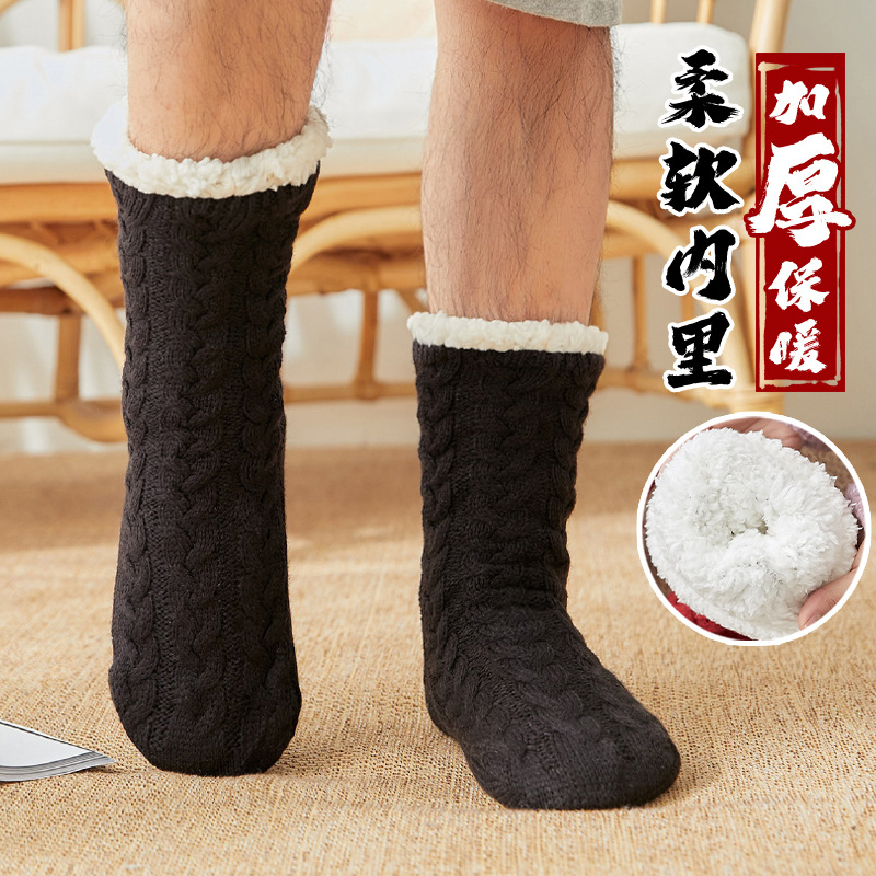 地板袜男士秋冬季加绒加厚羊羔绒中筒袜居家袜套保暖神器睡眠袜子