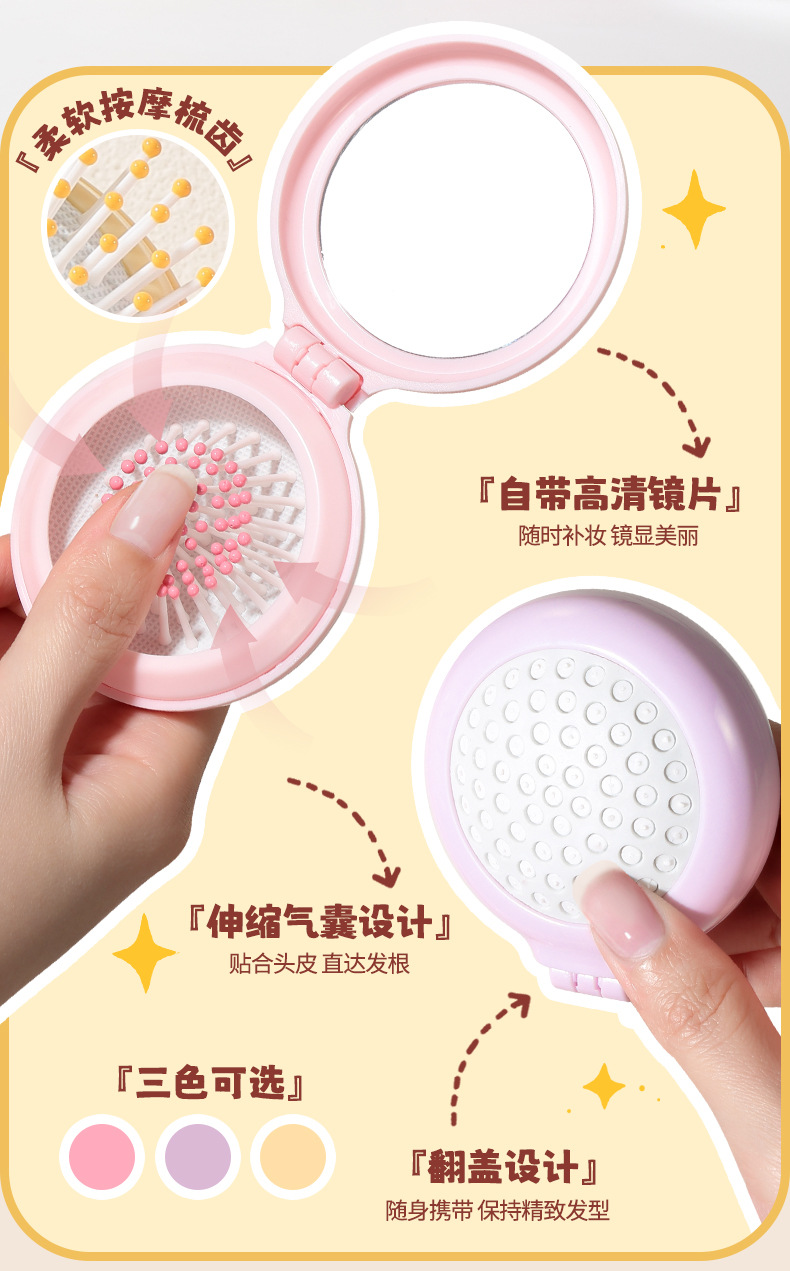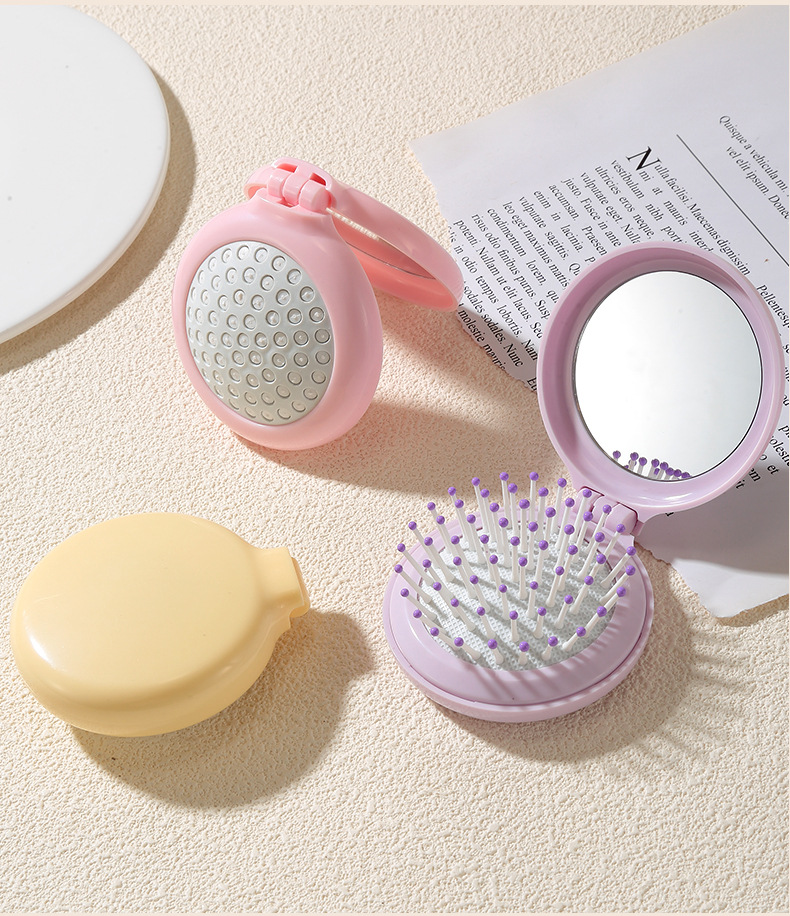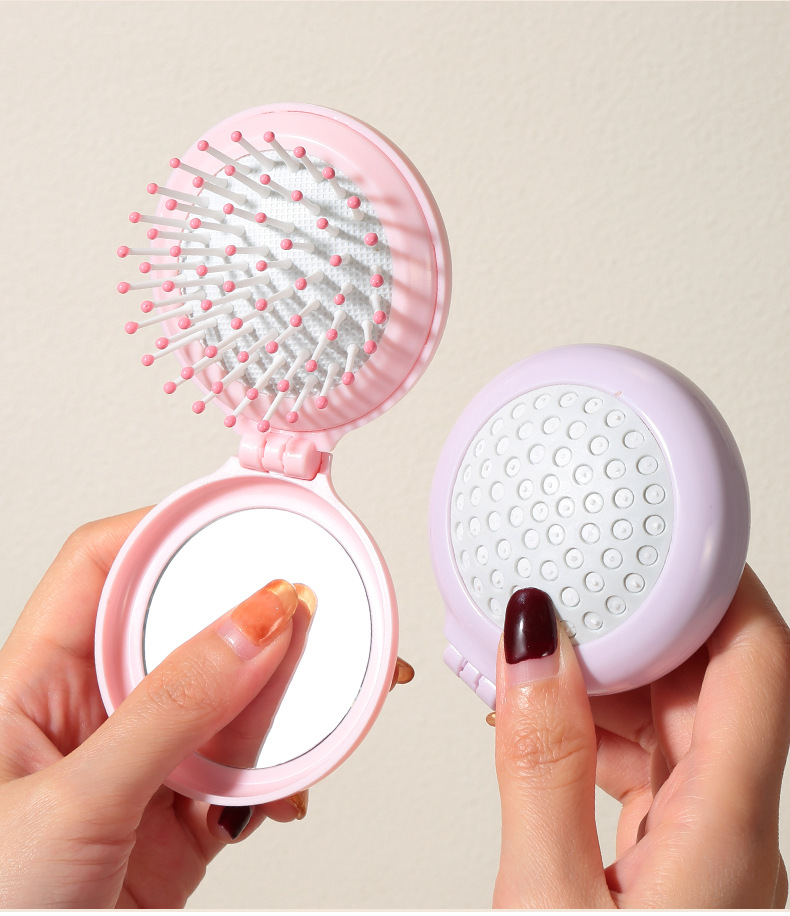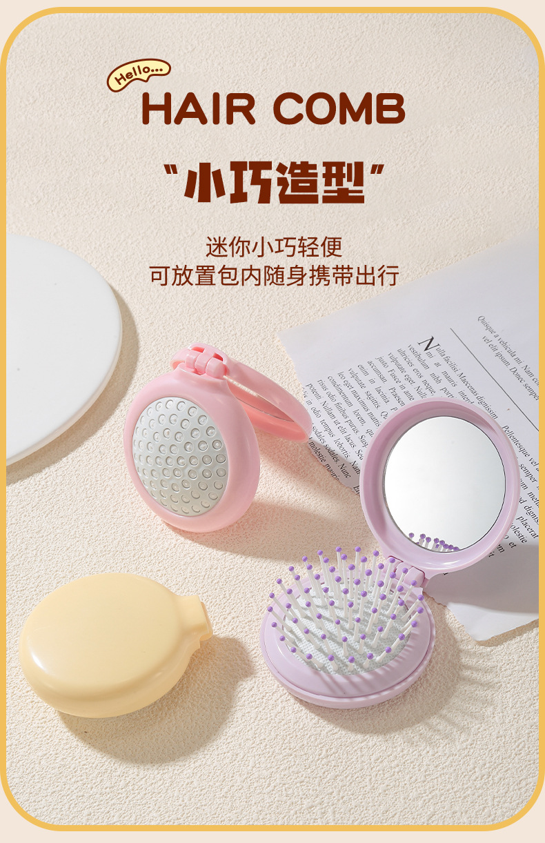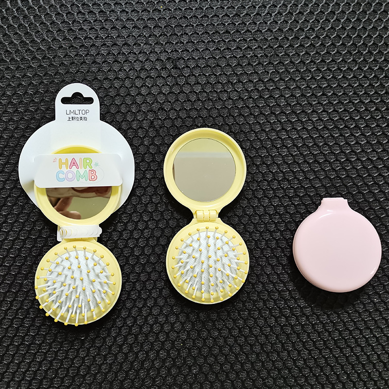 ラメラかわいい折り畳み鏡付き携帯櫛小型携帯折り畳み式学生マッサージエアマット櫛