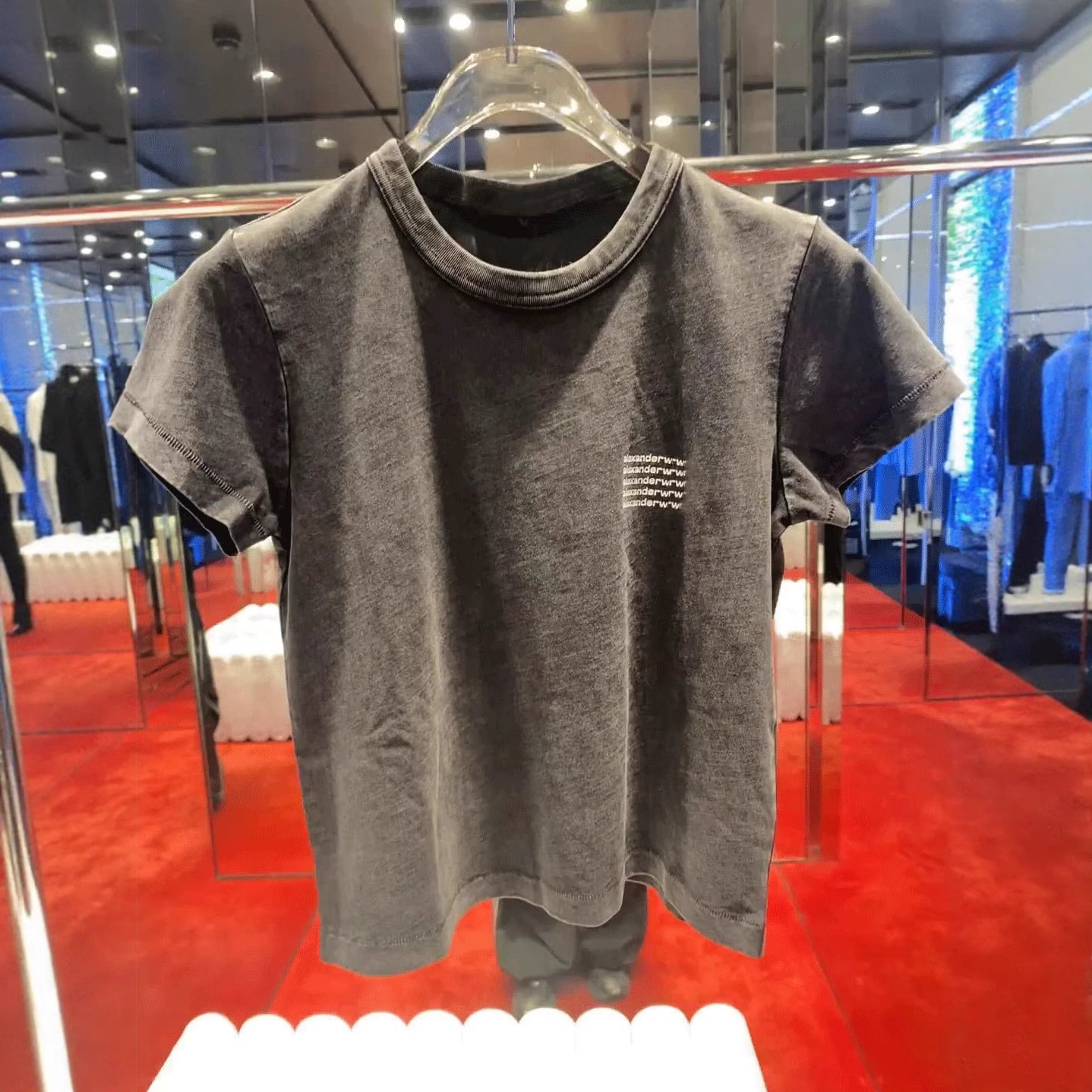 大王口袋休闲字母短款t恤2025秋季新款露腰短袖小字母圆领上衣女