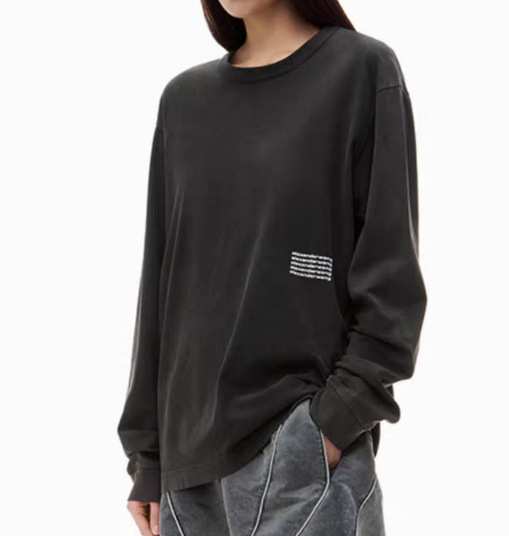 跨境外贸 大王家秋季新款300克重印花圆领宽松长袖打底衫T恤男女