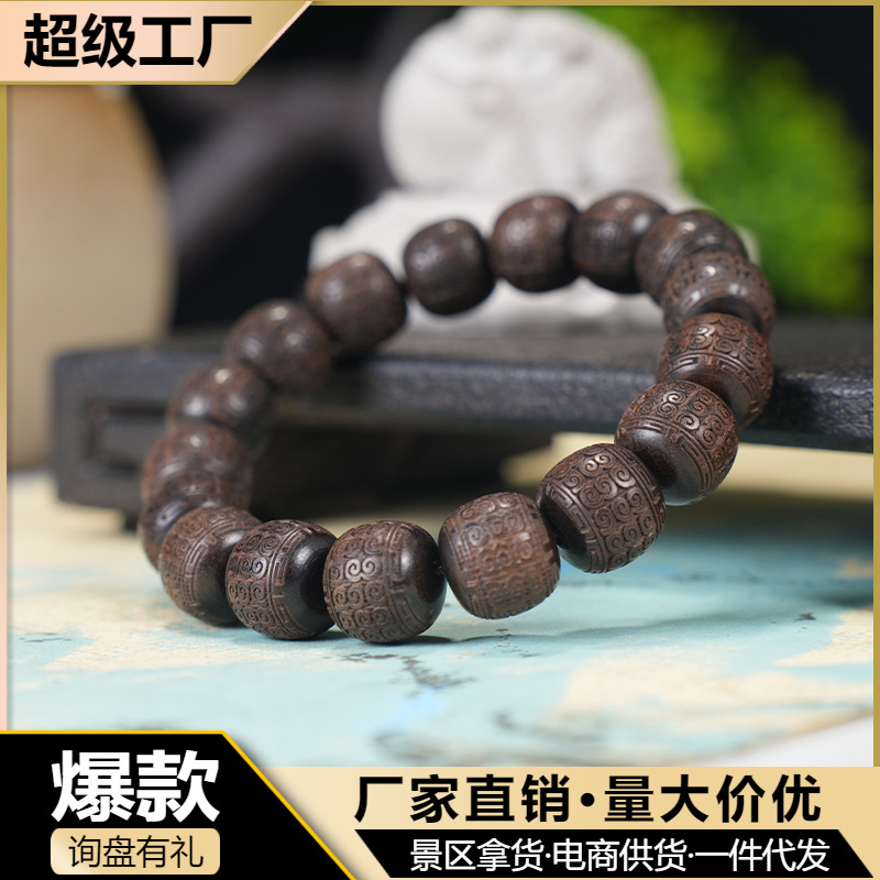 菩薩奇楠沈香木沈貴宝薬沈彫刻回紋古型桶珠手串手飾り文玩飾品