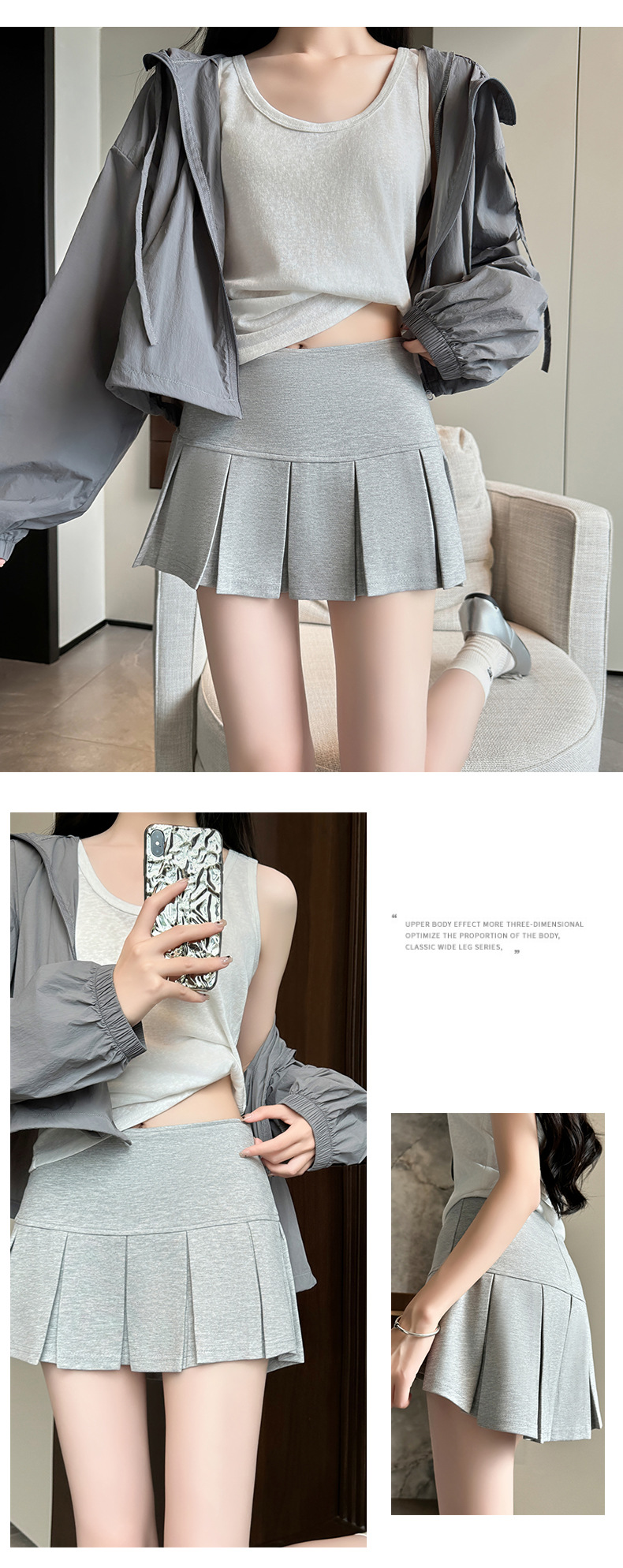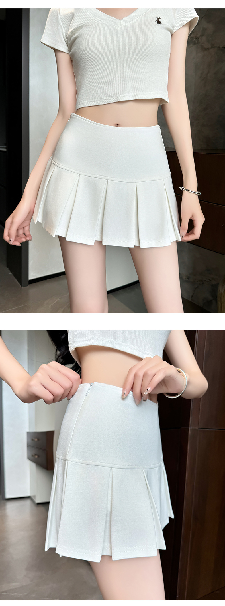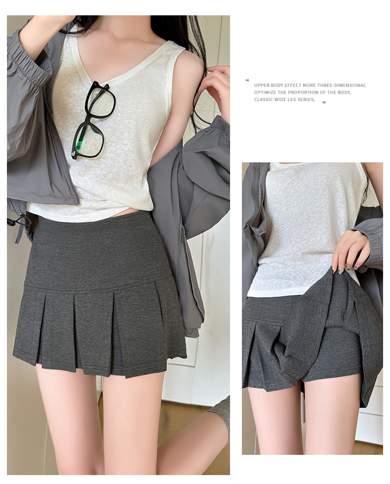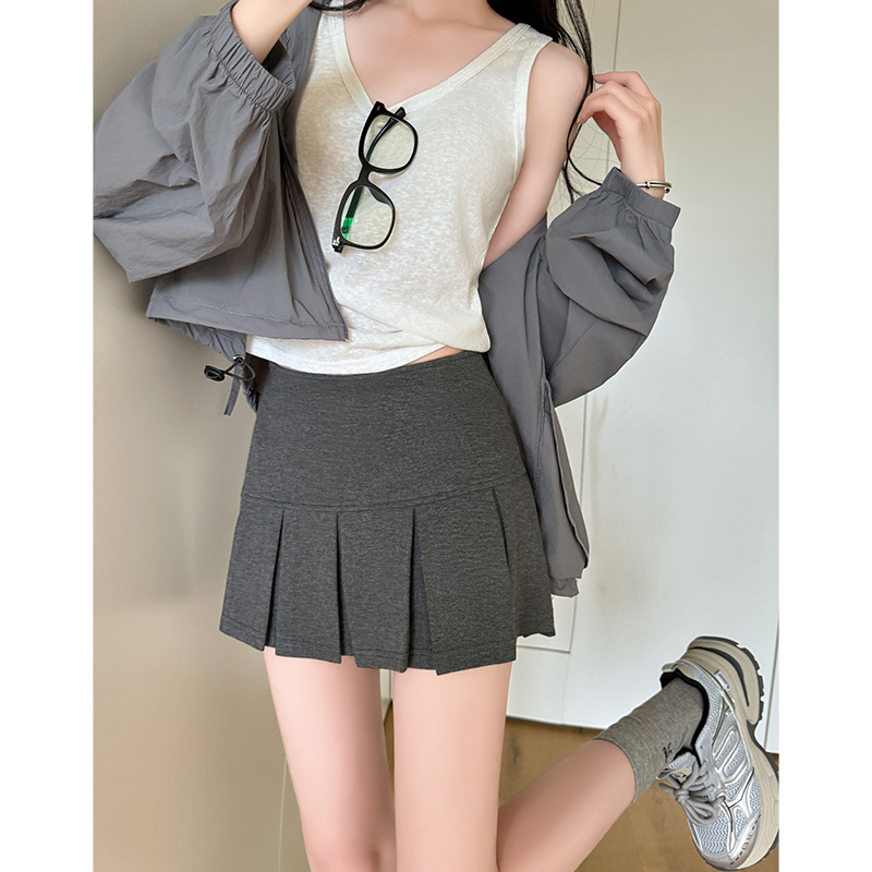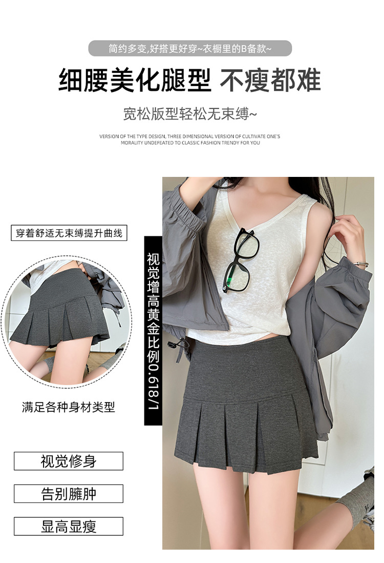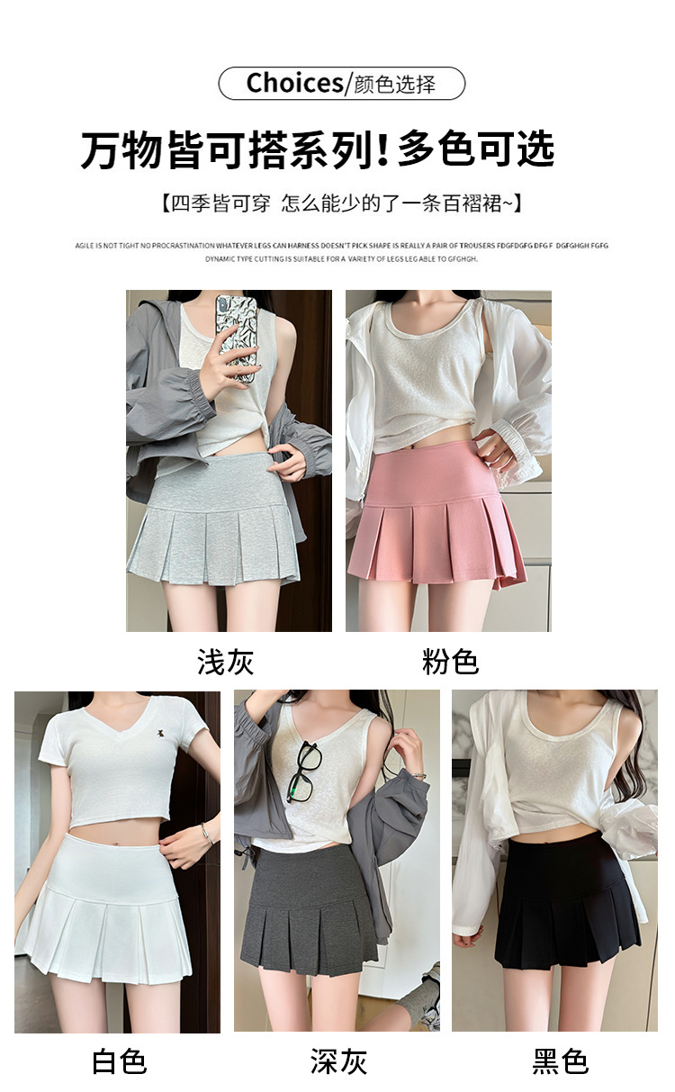 目に見えないジッパーショートスカート女性のための夏 2025 新しいアウターウェア露出防止痩身ヒップスカート A ラインプリーツスカート
