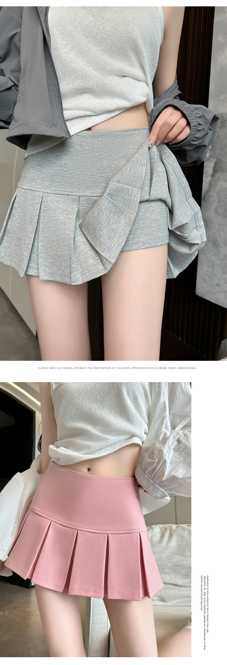 グレーのプリーツのスカートの女性の夏の新型の半身のスカートは腰が低くて痩せています。