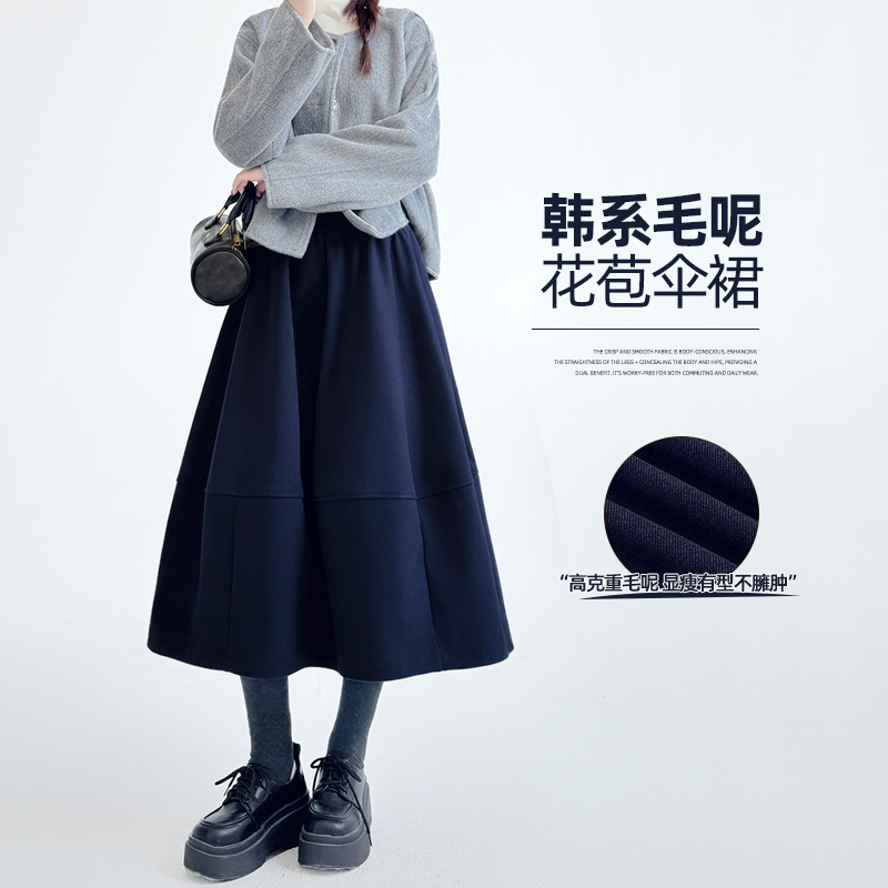 高克重毛呢花苞裙女秋冬2026新款显瘦高腰伞裙小个子中长款半身裙