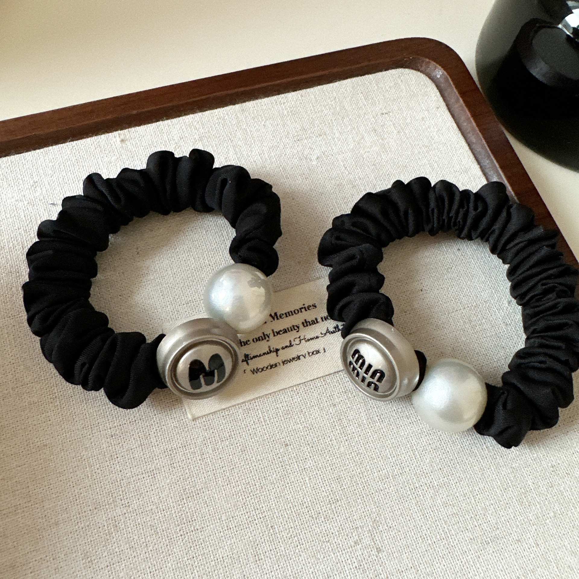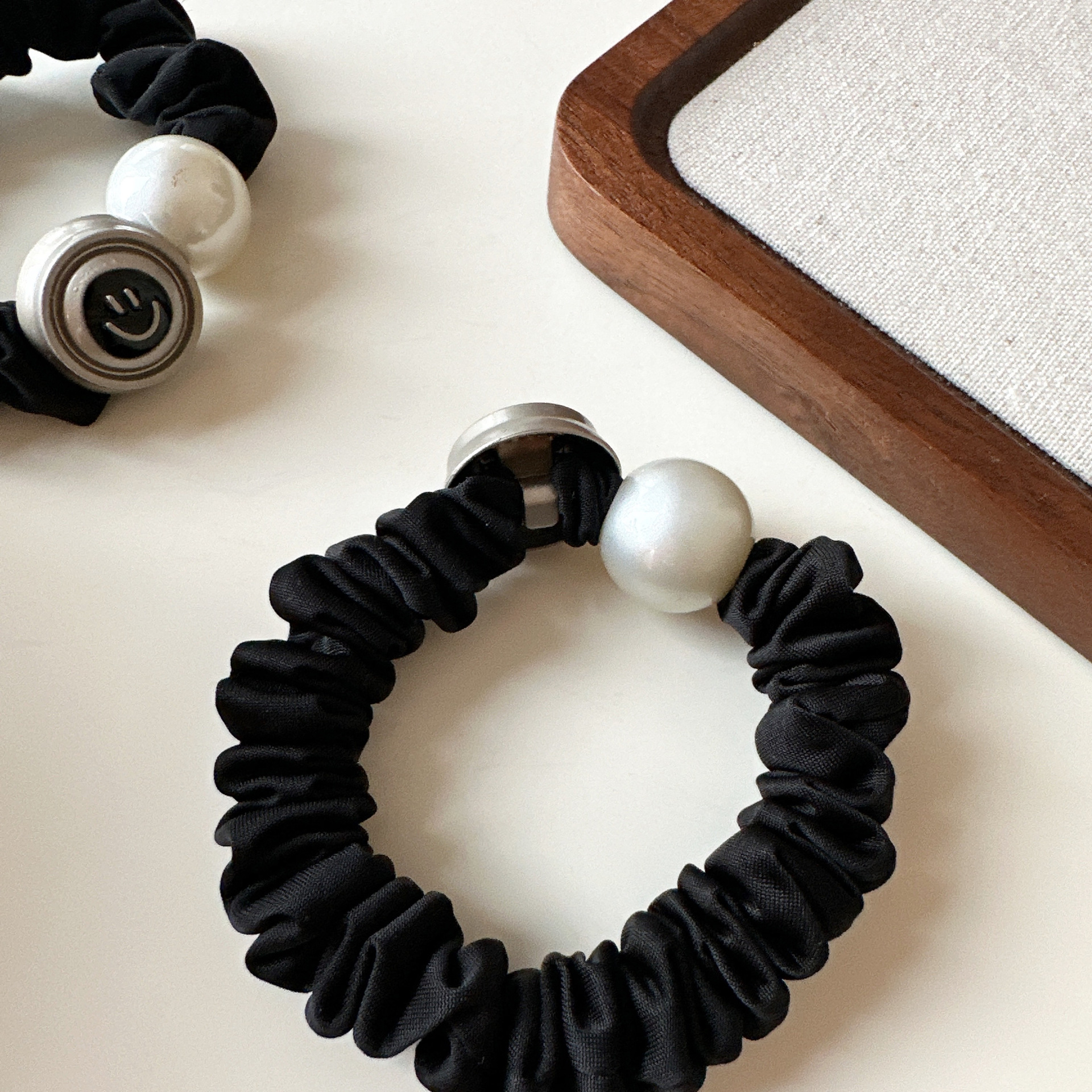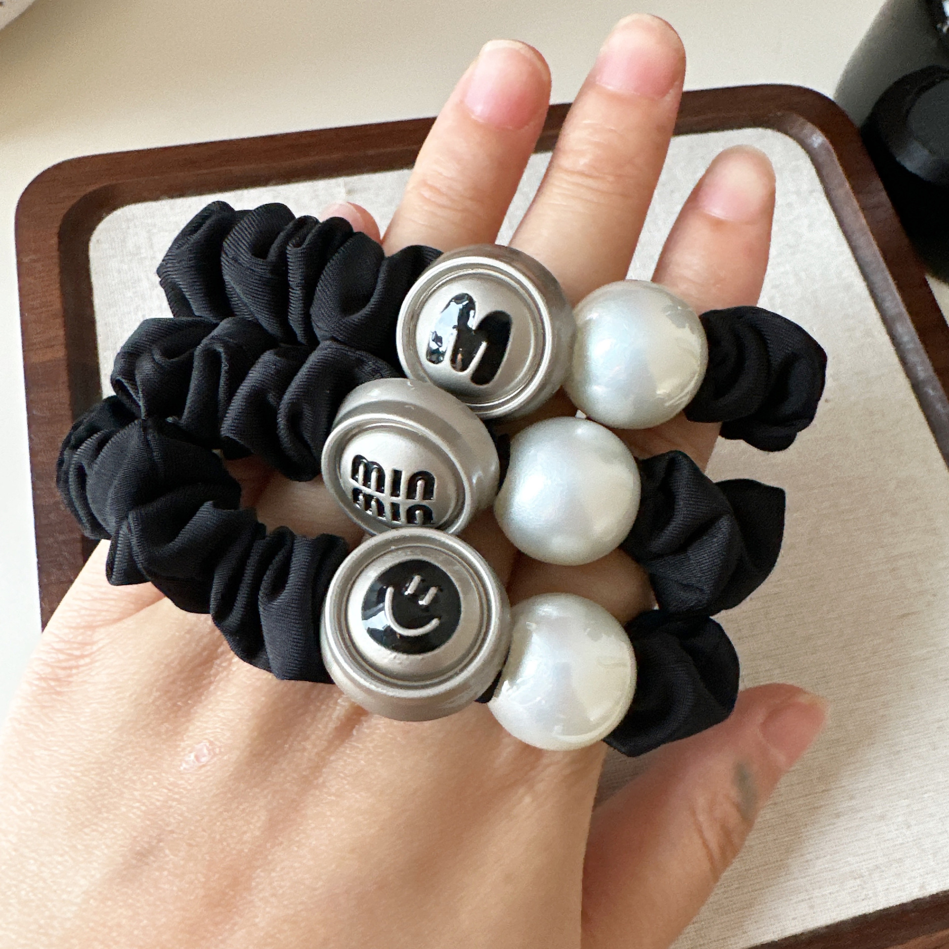 レトロな黒色の高級感のアルファベットの笑顔の金属の部品は真珠のシュシュをプラスして髪を傷つけません。