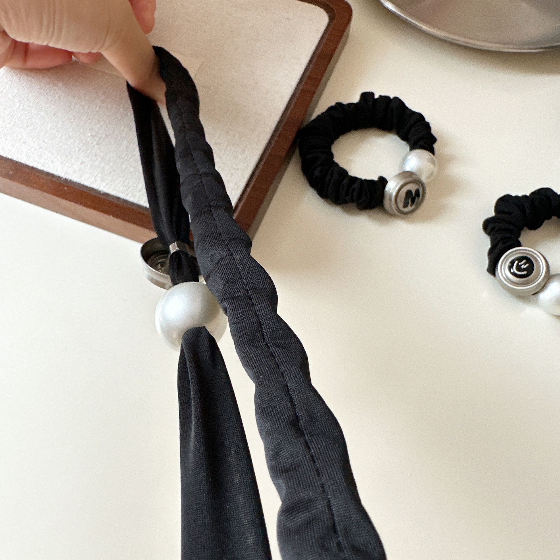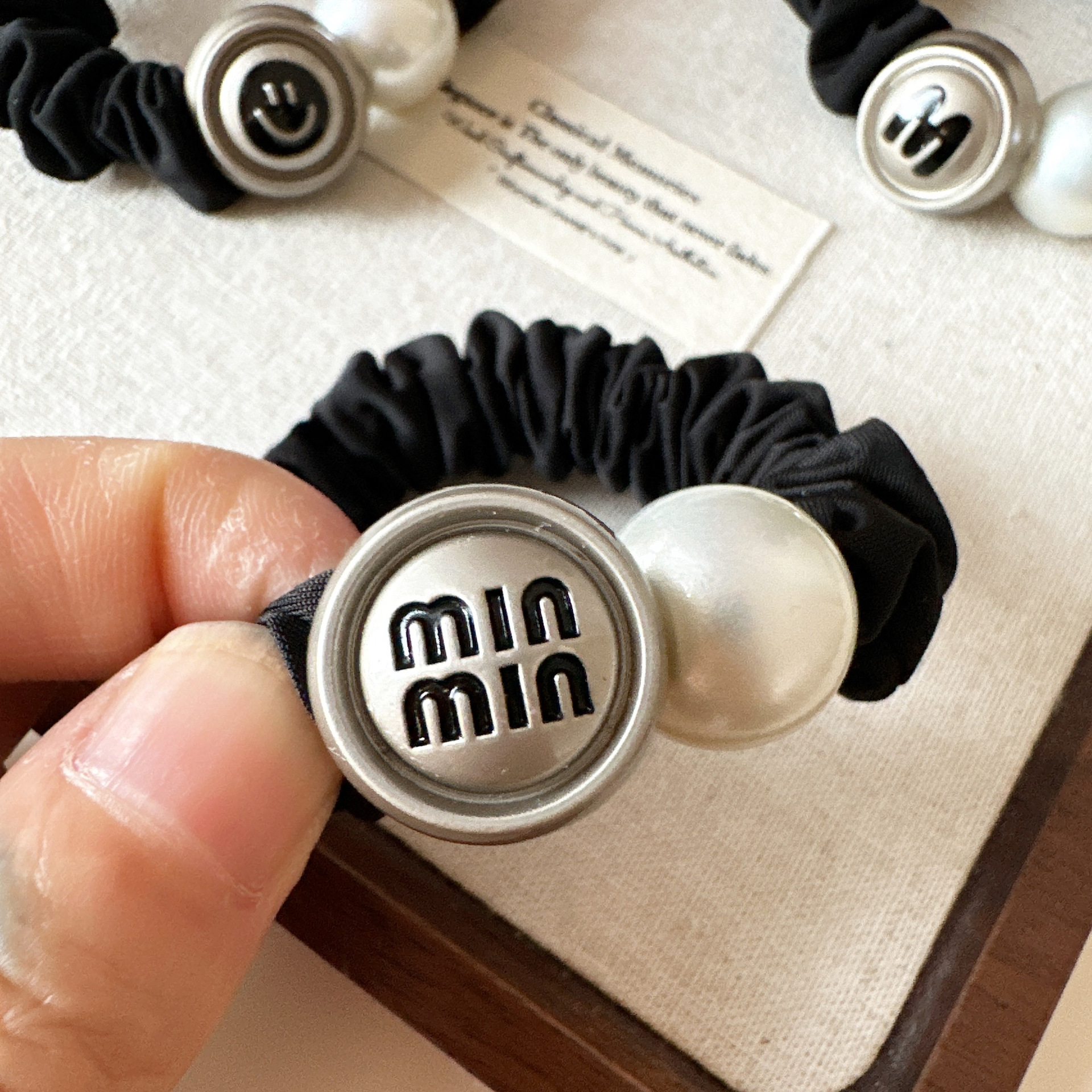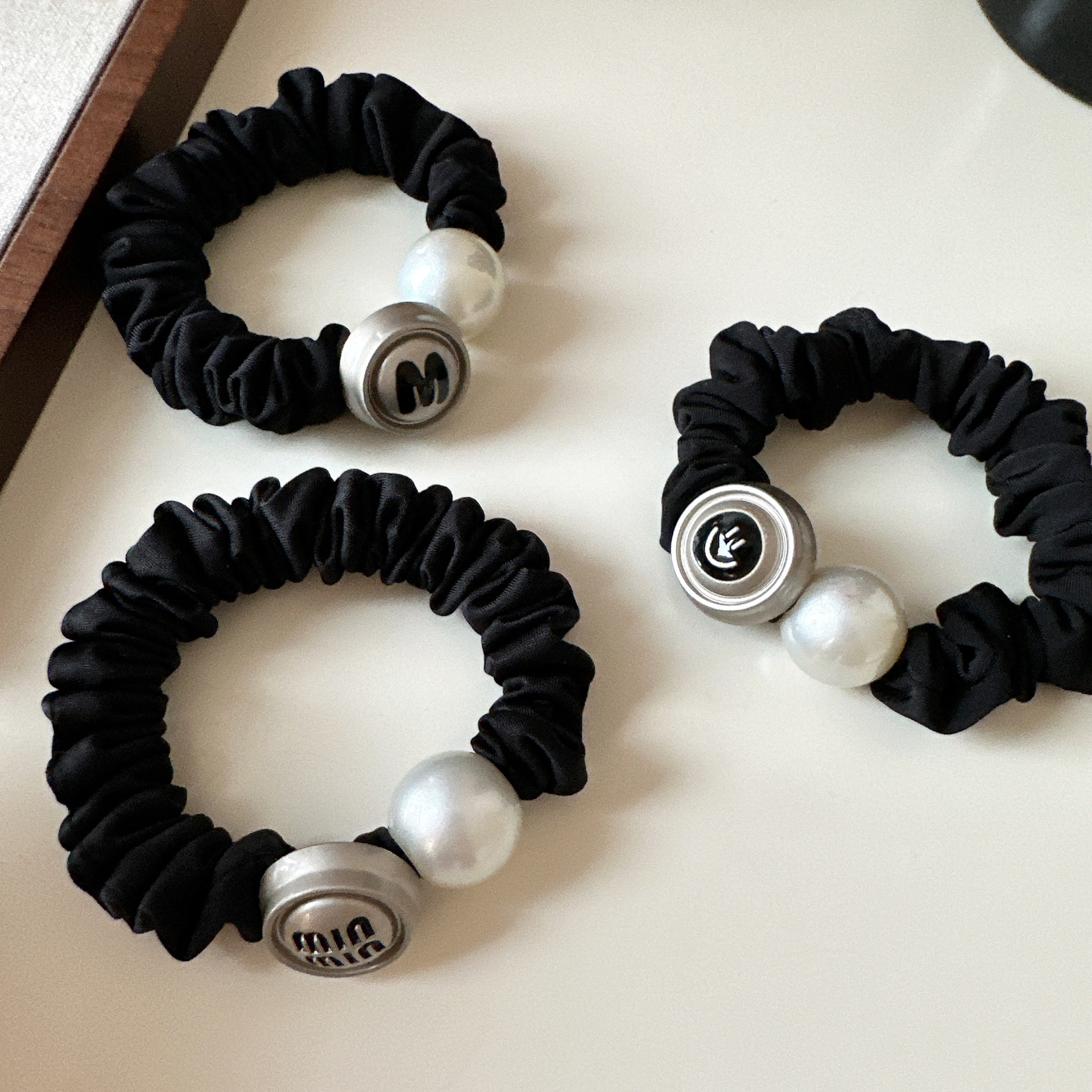 レトロな黒色の高級感のアルファベットの笑顔の金属の部品は真珠のシュシュをプラスして髪を傷つけません。