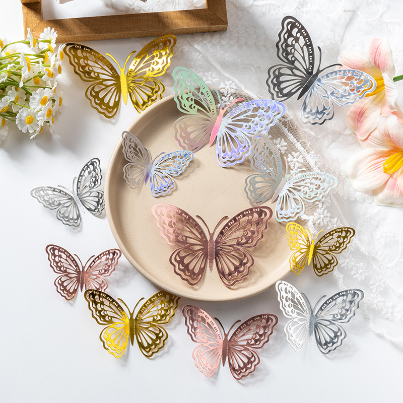 12個の立体透かし彫り蝶壁紙シミュレーション金属質感蝶壁シールパーティー壁面装飾