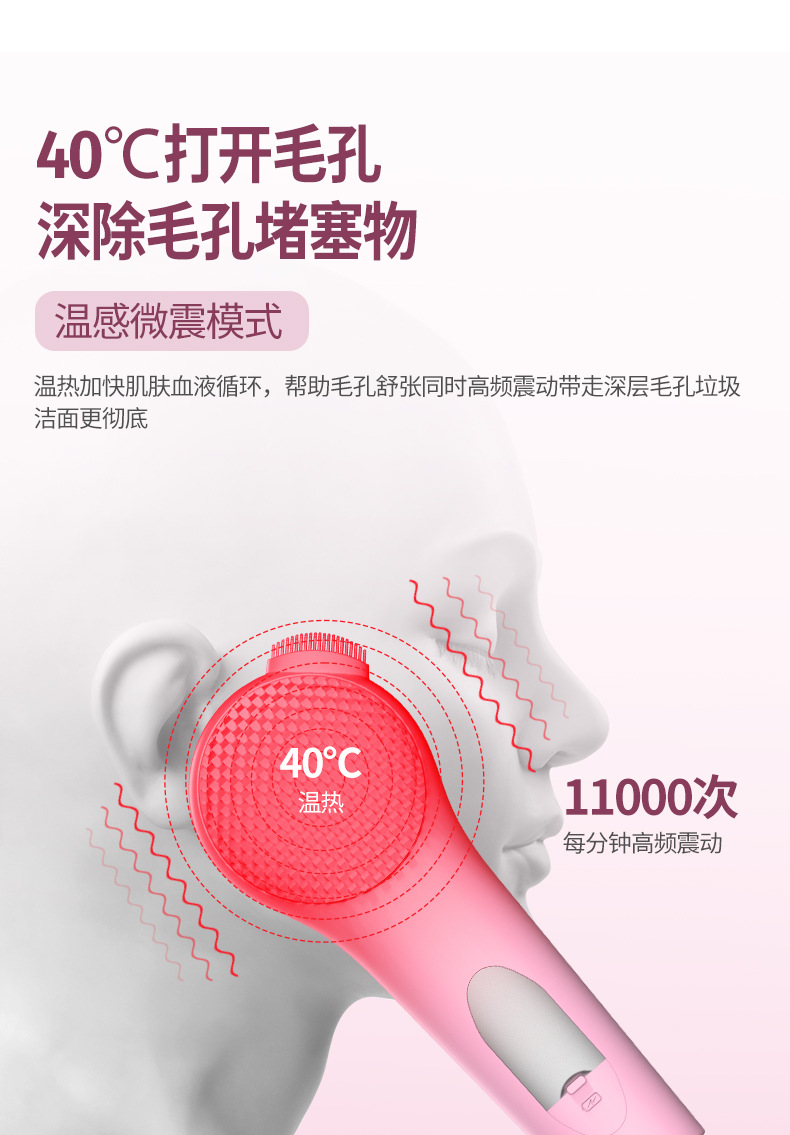 跨境洁面仪深层清洁硅胶毛孔清洁洗脸刷冷热美容按摩震动导入仪
