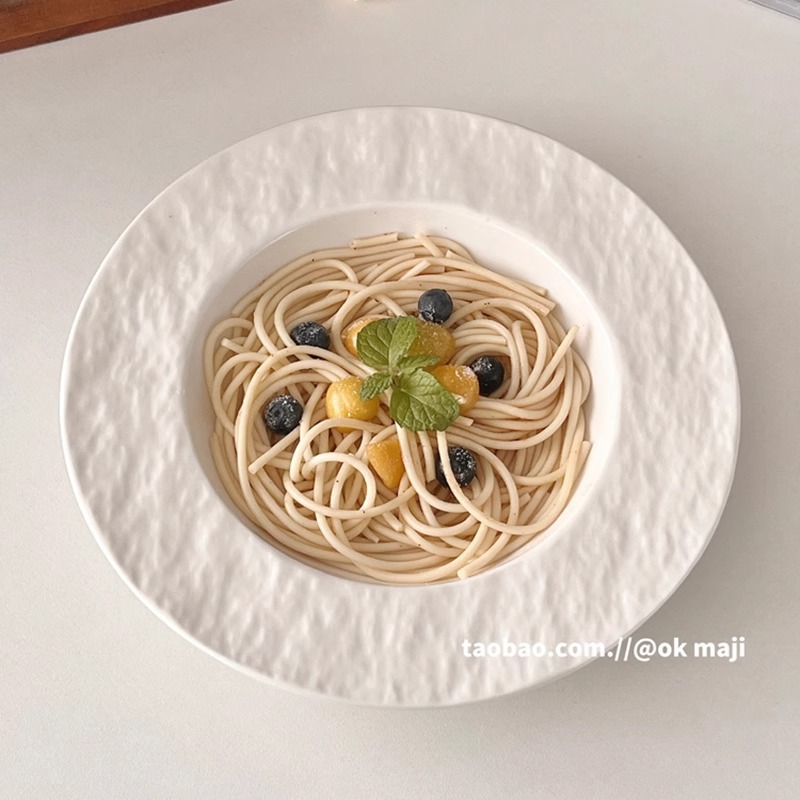 Ok maji日本式高級感皿家庭用パスタ麦わら帽子皿スープ皿陶磁器白色皿皿皿