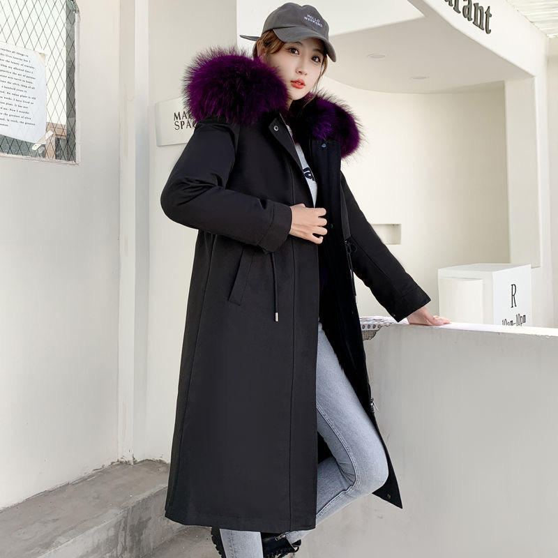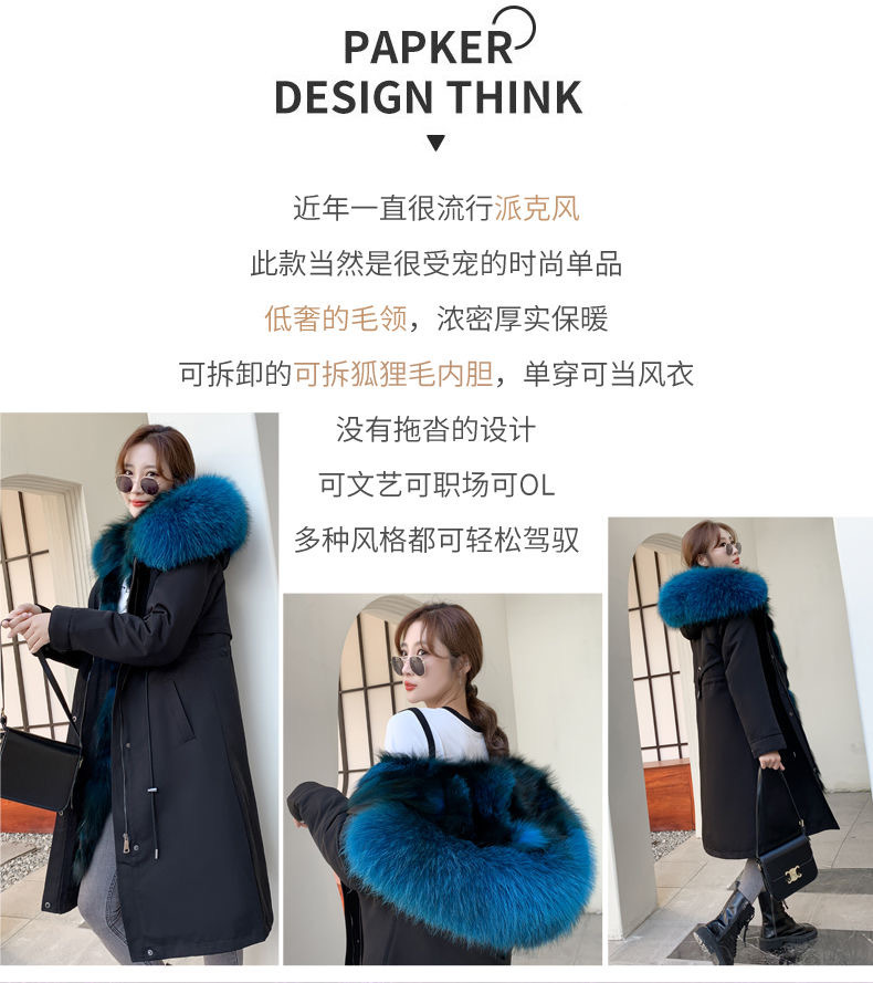 2023年大流行のパーカー、女性用、取り外し可能な裏地、本物のファーのコート、スリムフィット、冬用、暖かい、多用途、フルレザー
