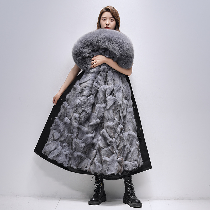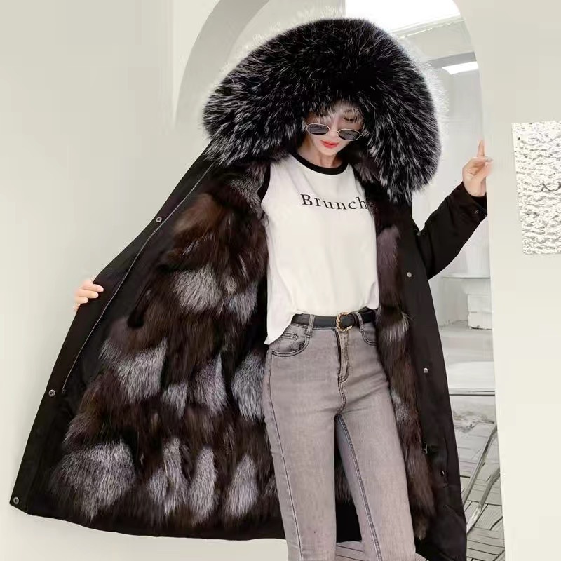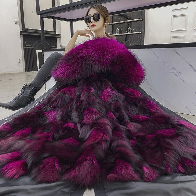 パーカー レディース 2025年冬新作 ファーコート レディース フォックスファー 裏地取り外し可能 ファー一体型コート