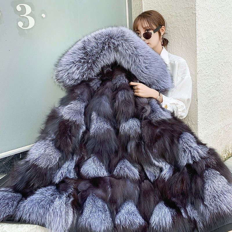 海寧ファーコート レディース 2025冬新作 パーカー風コート フォックスファー裏地取り外し可能 若者向けコート