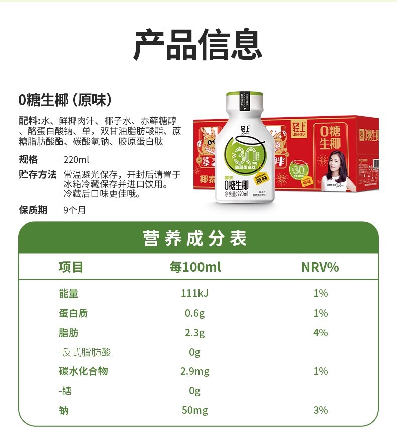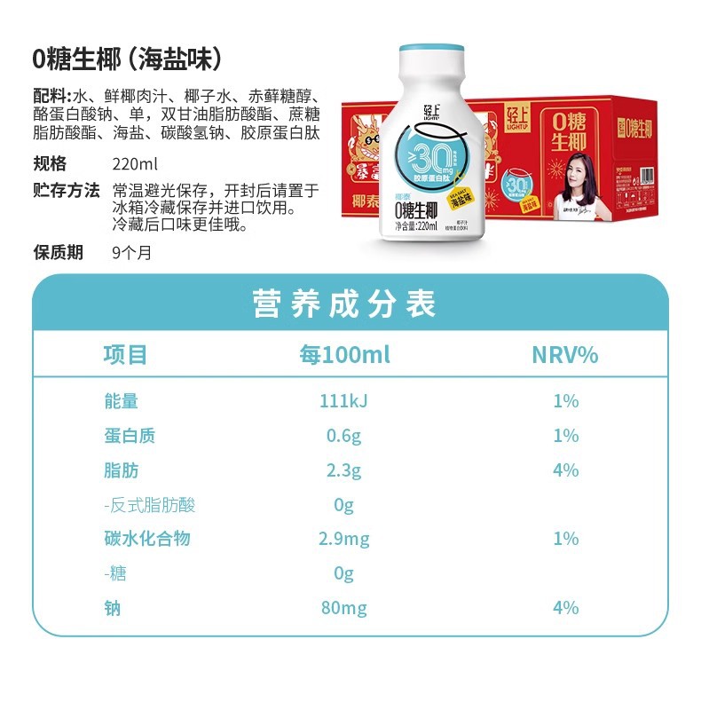220轻上原味0糖生椰(30胶原1*10)喜庆版
