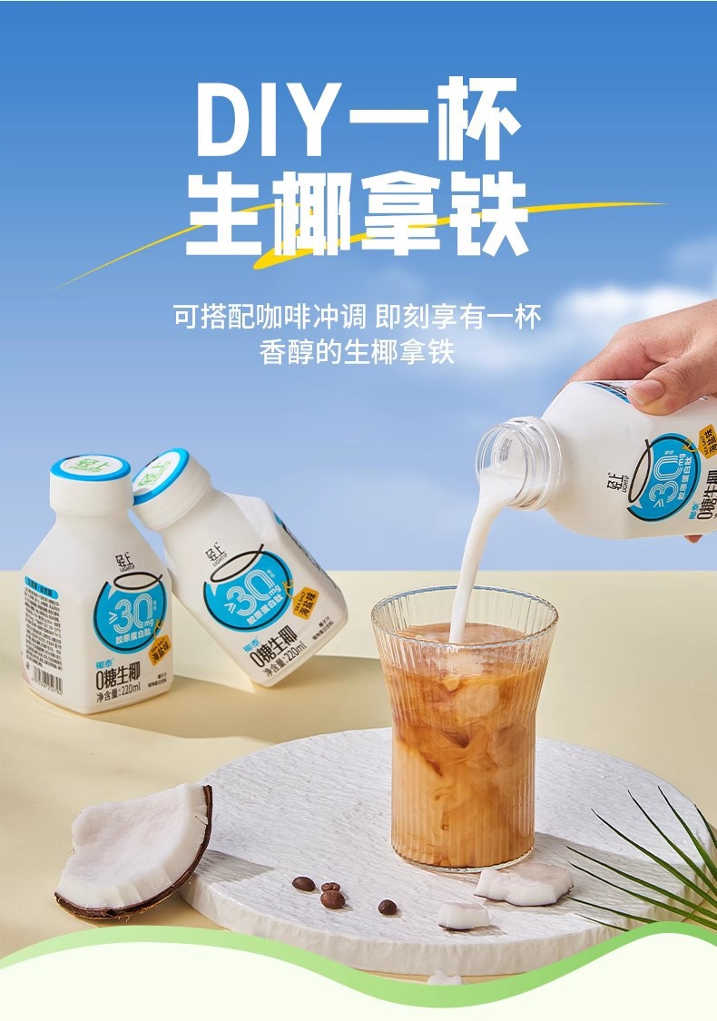 軽い上0砂糖生ココナッツジュースコラーゲンペプチドココナッツミルクココナッツ飲料220ml